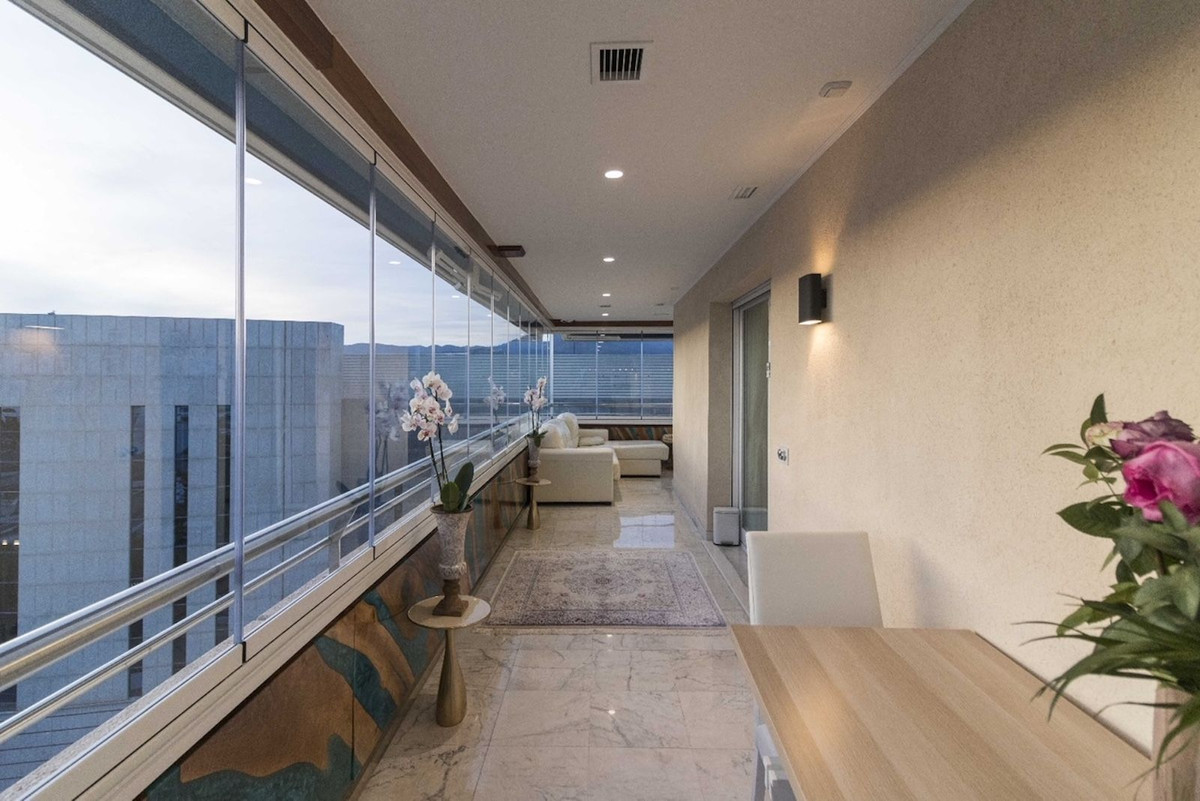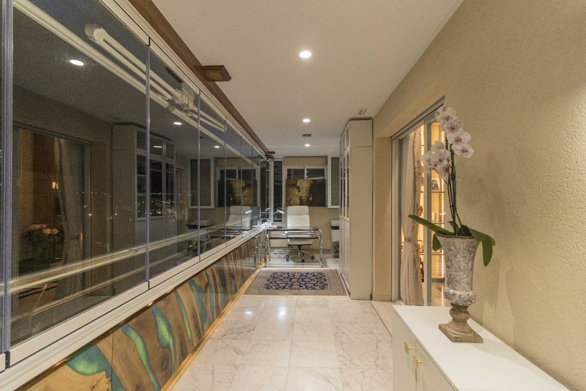 Designer furnished, with exclusive furniture, has Bang & Olufsen system throughout the house, has closed terrace with Lumon glass curtains, climate control system throughout the house. It is well equipped.