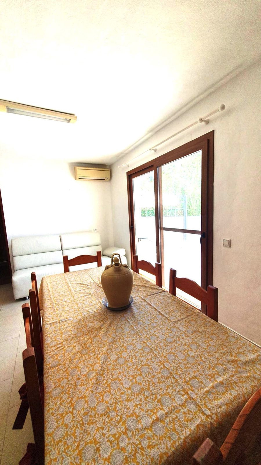 A bright, open-plan living-dining room, flowing seamlessly into a fully furnished kitchen boasting essential appliances: fridge, washing machine, gas hob, and efficient hot water heater – ready for immediate enjoyment.