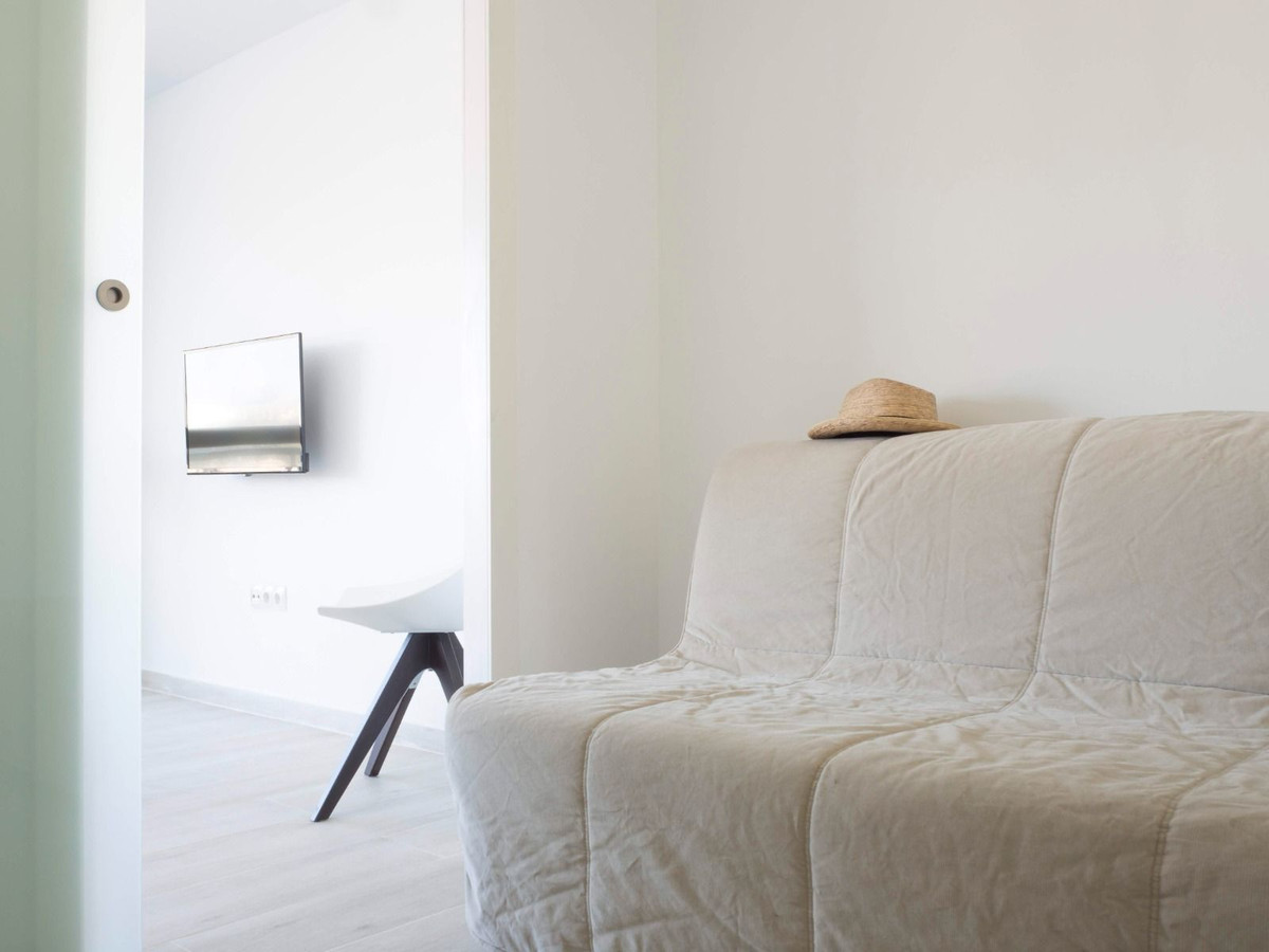 Aménagement pratique : Deux chambres confortables, une salle de bain complète et un accès direct à la terrasse depuis le salon.