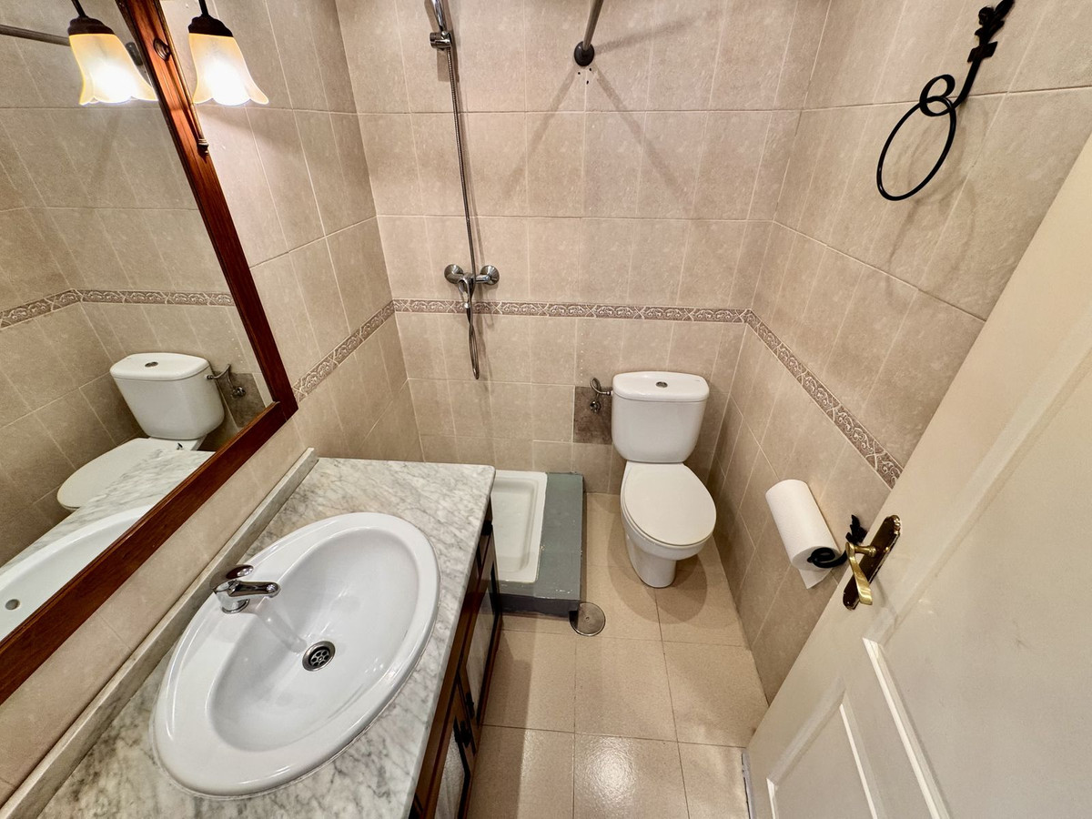 L'aménagement intérieur comprend deux chambres, deux salles de bain complètes, un salon-salle à manger spacieux et lumineux, ainsi qu'une grande cuisine indépendante au mobilier soigné. Toutes les fenêtres sont équipées de double vitrage Climalit, garantissant une isolation thermique et acoustique optimale. De plus, la propriété bénéficie d'une excellente orientation solaire, offrant une lumière naturelle toute la journée.