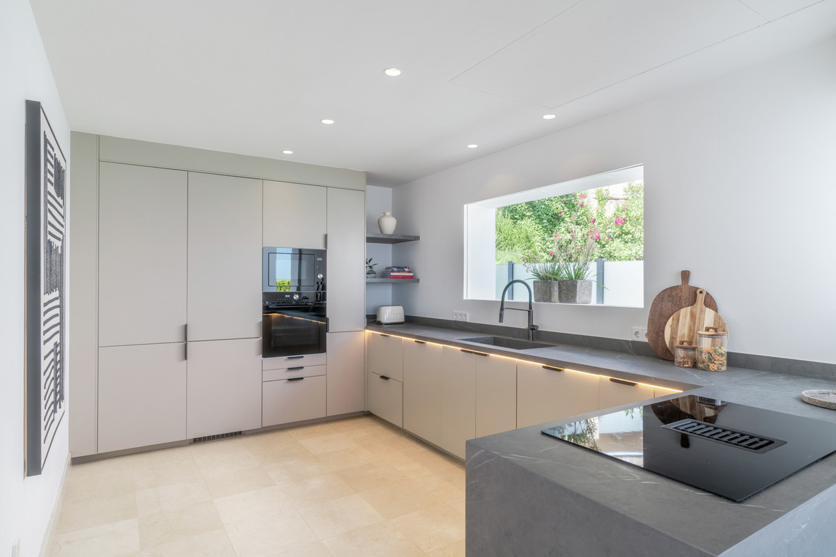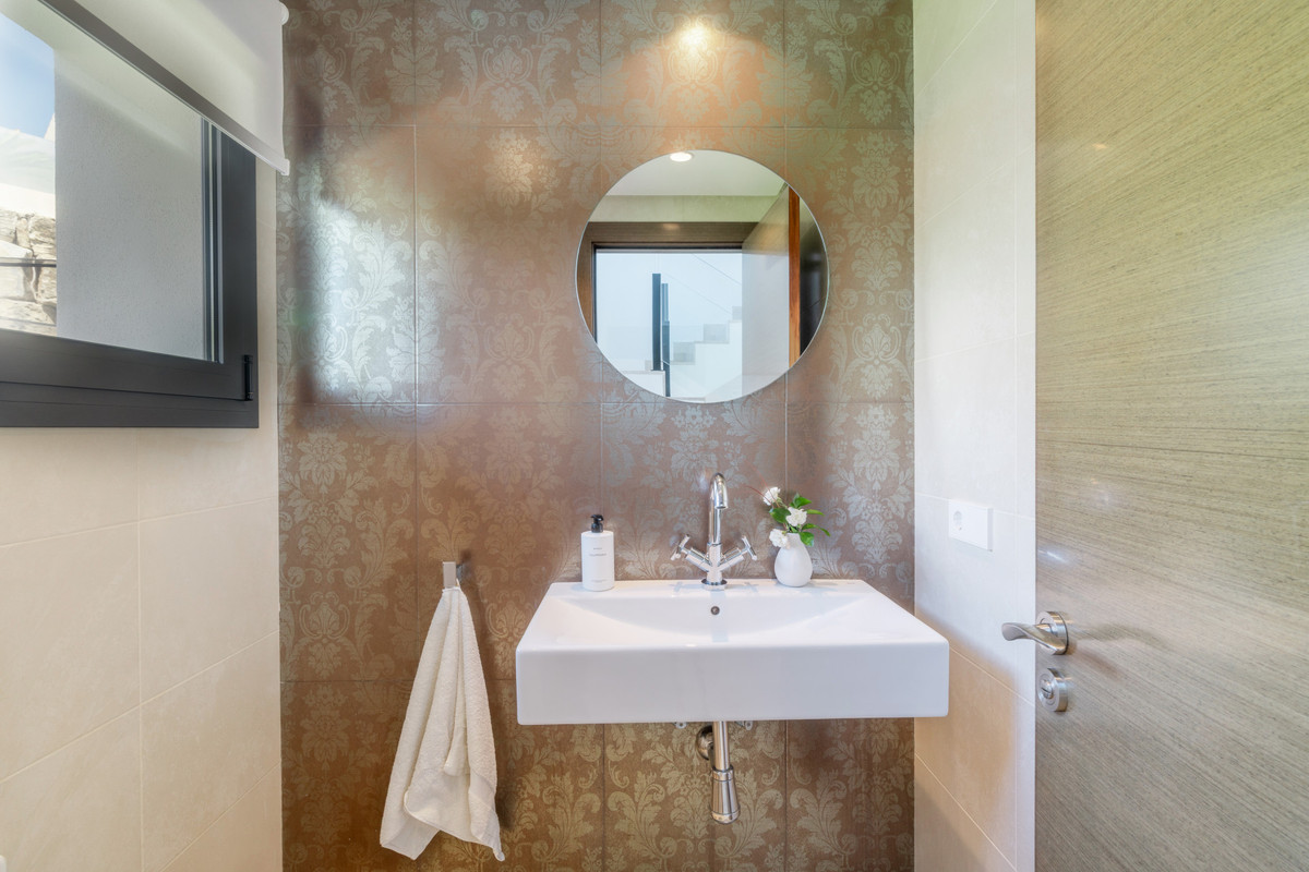 La villa comprend 5 chambres, toutes dotées de salles de bains privatives, à l'exception de celle du sous-sol, ainsi que de toilettes invités. D'une superficie intérieure de 448 m² sur un terrain de 595 m², la propriété allie architecture contemporaine et espaces de vie fonctionnels. Cette villa est l'une des plus grandes de l'urbanisation et offre les plus belles vues.