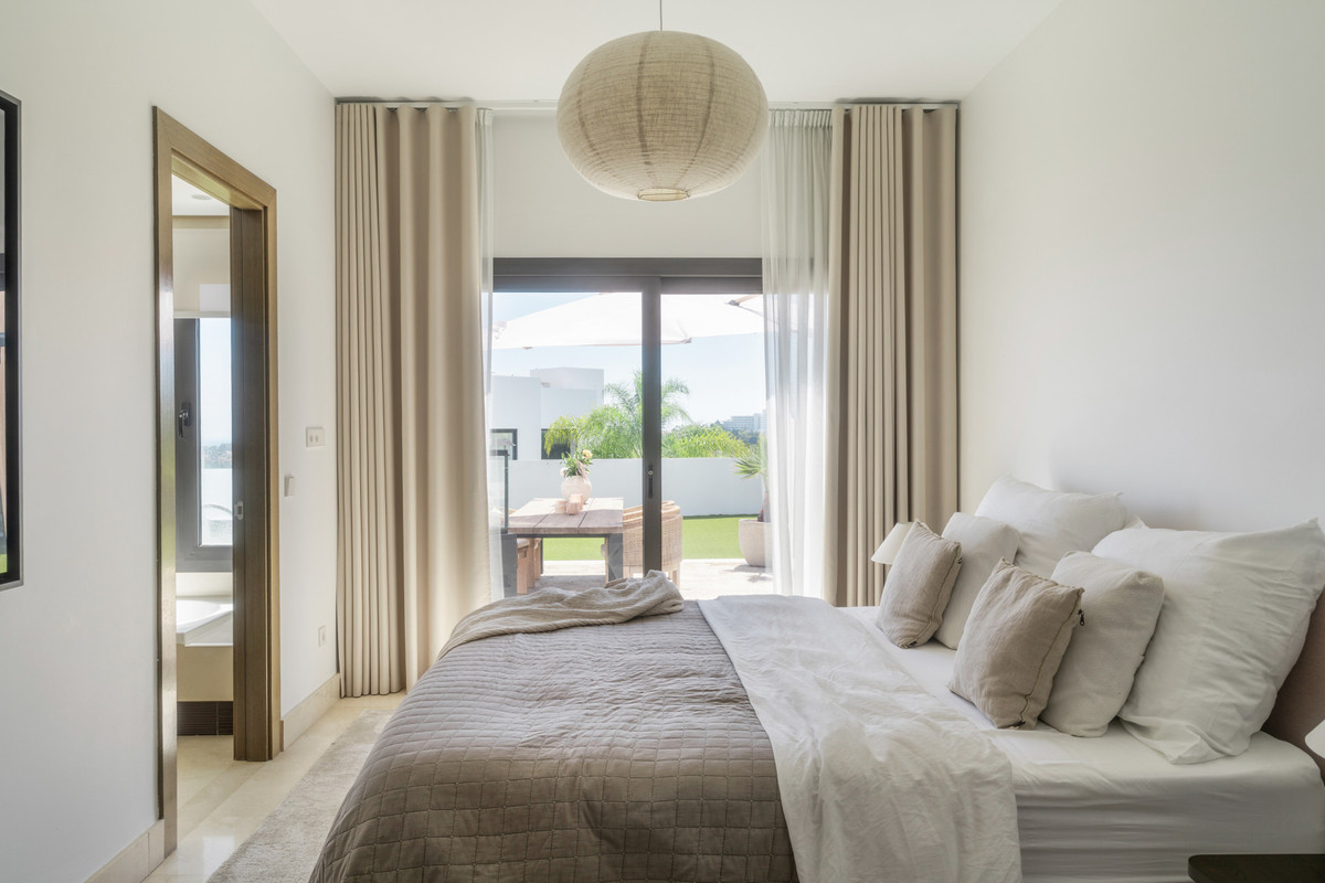 Cette villa d'angle, située dans les résidences sécurisées d'Atalaya Fairways et de La Alquería, allie modernité, fonctionnalité et intimité. Située juste à côté du portail de sécurité, Atalaya Fairways est surveillée par un gardien et des caméras de surveillance réparties dans toute la résidence, pour une tranquillité d'esprit absolue. La Alquería, quant à elle, assure un niveau de sécurité supplémentaire grâce à des patrouilles régulières, ce qui en fait l'une des maisons les plus sûres de la région. Son emplacement en angle renforce encore l'intimité, la rendant idéale pour une vie de famille ou comme résidence secondaire.