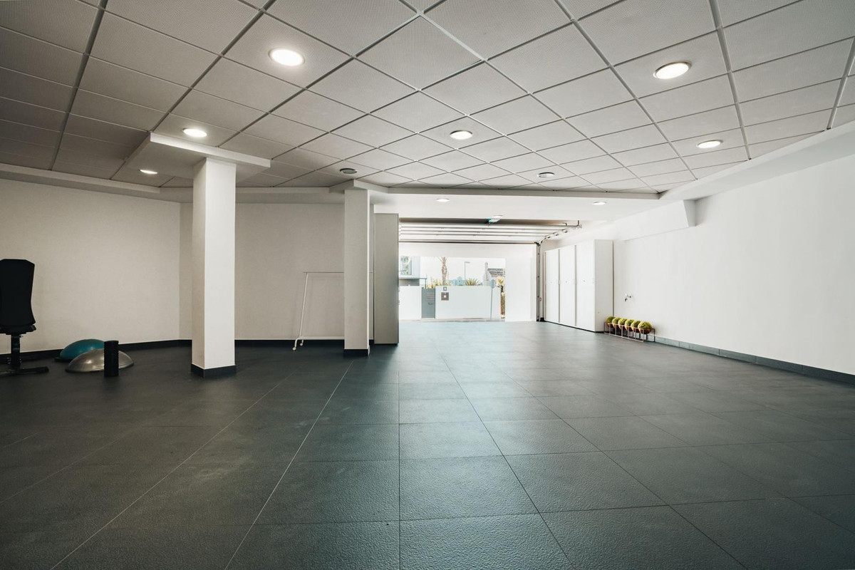 L'intérieur est entièrement meublé et comprend une cuisine équipée, un coin repas et un salon. De grandes baies vitrées laissent entrer la lumière naturelle tout en offrant une vue sur le jardin privé et la piscine. Un ascenseur dessert tous les niveaux, assurant confort et accessibilité, et un garage peut accueillir jusqu'à quatre voitures.