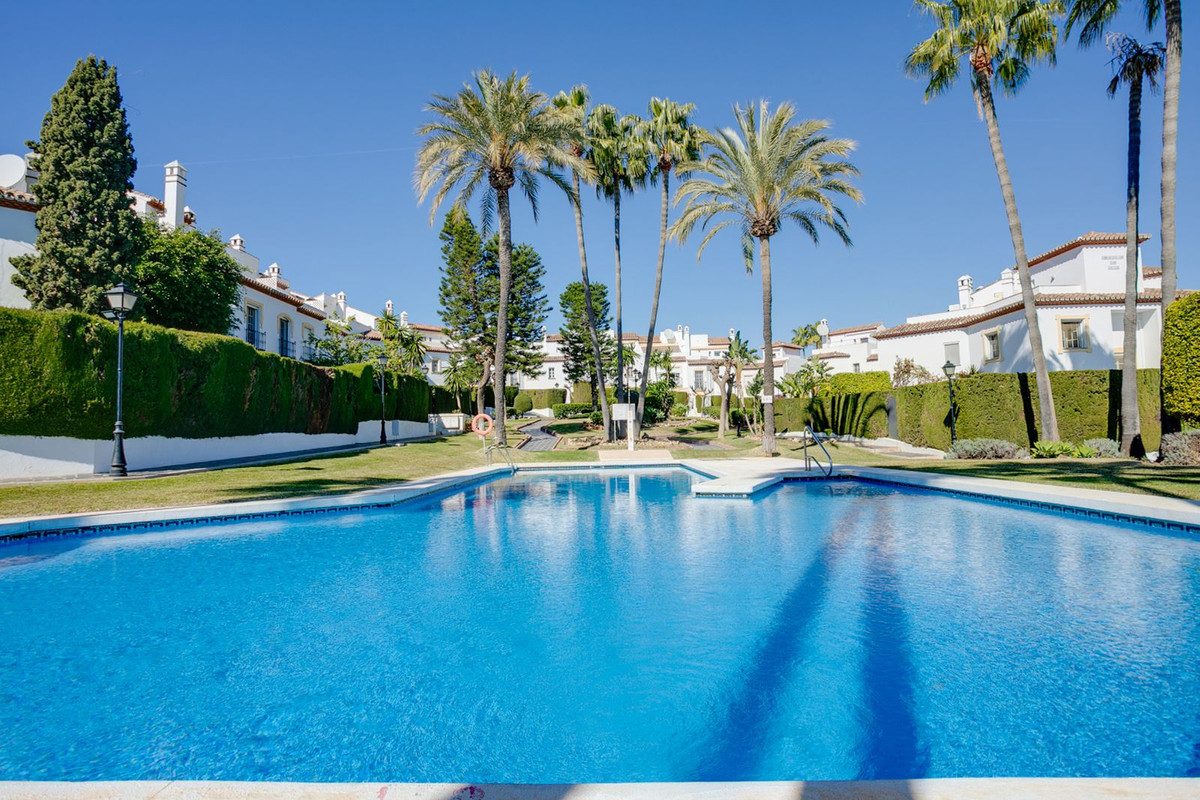 Belle maison de ville avec 3 chambres et 2 salles de bains et toilettes invités. Il y a un jardin devant où vous entrez dans la maison, une cuisine entièrement équipée qui peut être ouverte si quelqu'un le souhaite et un salon, une salle à manger qui s'ouvre sur le jardin privé puis sur le jardin commun avec grande piscine.