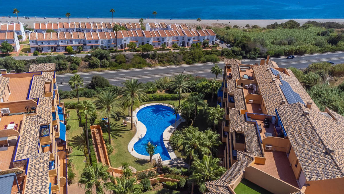 NOUVEAU SUR LE MARCHÉ, ce penthouse bénéficie d'un emplacement exceptionnel au sein d'un complexe résidentiel paisible et bien entretenu de la Costa del Sol, idéal pour ceux qui recherchent la tranquillité à proximité de la mer. Une agréable promenade permet d'accéder directement à la plage, à seulement 3 minutes à pied, vous permettant ainsi de profiter du littoral sans avoir besoin de voiture. Ce charmant penthouse de plain-pied comprend deux chambres, dont une avec salle de bains privative, une cuisine séparée et une buanderie. Il se distingue par sa luminosité, ses volumes et surtout par sa terrasse privée offrant une vue imprenable sur la mer et les montagnes : un cadre idéal pour se détendre et profiter de l'art de vivre méditerranéen. Grâce à son excellente orientation, la propriété bénéficie d'une lumière naturelle tout au long de la journée, créant une atmosphère chaleureuse et accueillante toute l'année. Situé dans une résidence soignée avec piscine commune, espaces verts et parking souterrain inclus dans le prix. Un bien offrant un excellent potentiel locatif, aussi bien pour des locations saisonnières que pour des séjours de longue durée, idéal également comme résidence principale ou secondaire. Une propriété hautement recommandée, prête à emménager et à profiter de tout ce que la Costa del Sol a à offrir.