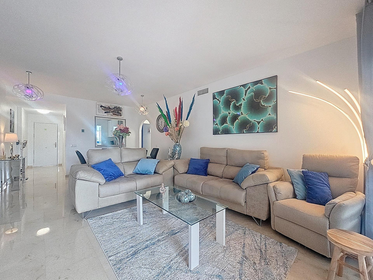 L'appartement comprend deux chambres confortables et deux salles de bains décorées avec goût. Le séjour spacieux et chaleureux s'ouvre sur une grande terrasse privée, idéale pour profiter de la douceur du climat de la Costa del Sol, partager des repas en plein air ou se détendre au calme.