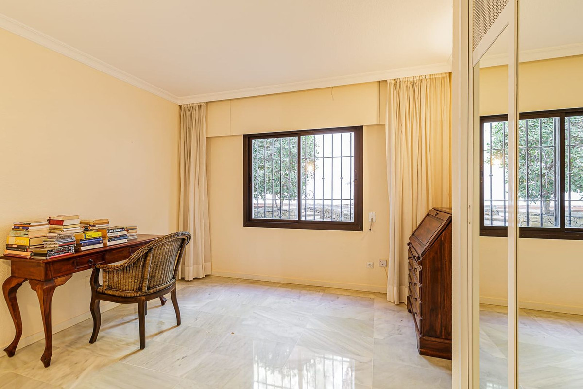 This south-facing ground-floor apartment offers endless potential — steps from golf, shops, and the charm of Marbella life.