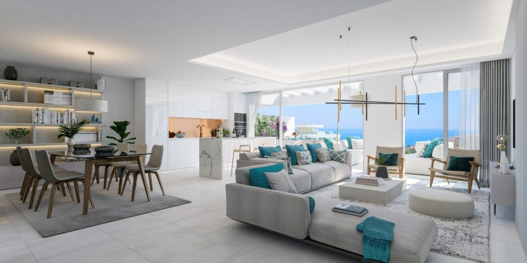 L'appartement bénéficie d'équipements et d'équipements haut de gamme, notamment des cuisines ouvertes, des appareils électroménagers de classe A en standard et offre une vue sur la mer grâce à son emplacement au sommet d'une colline.