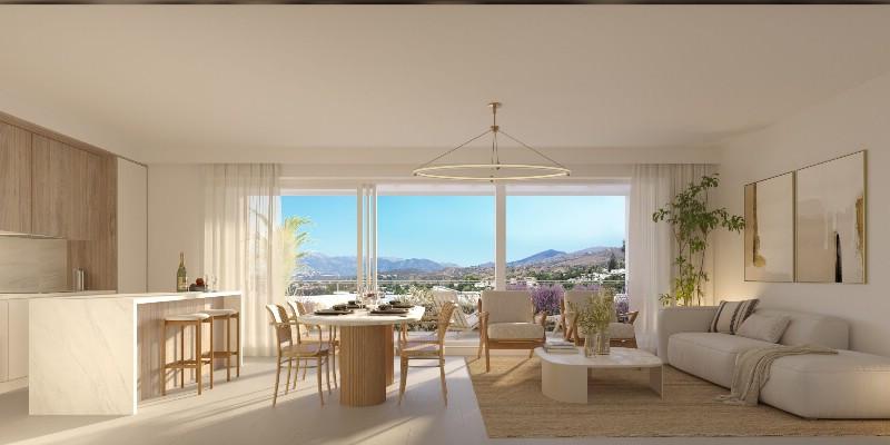 Elviria Beach Residences est un développement privé avec clôture périphérique, grands espaces verts, piscine commune, salle de sport et espace de coworking.
