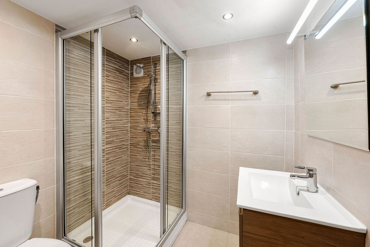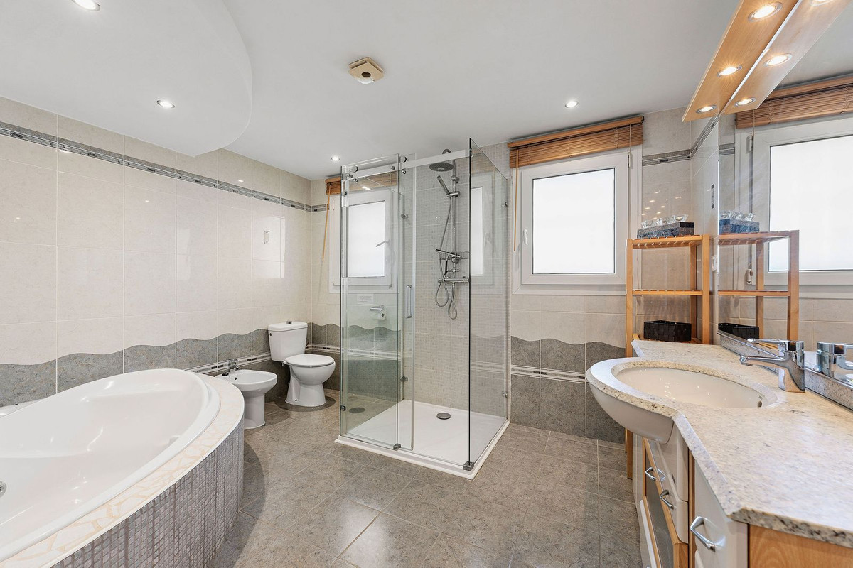 On the downstairs level you have another living room and dining room leading out to the lower part of the terrace and pool area. Here you have a two spacious guest bedrooms and a further bedroom without window that would be noted as the 0.5 bedroom. These 2.5 bedrooms are also sharing a nice size bathroom. You also have another kitchen downstairs and a separate entrance so it could function as a separate unit.