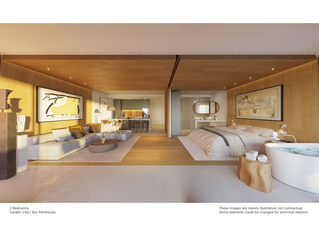 Sky Villas : Penthouses de 2 et 3 chambres au 4ème étage, également avec solarium privé à partir de 150 m2 minimum + piscine privée, pergola, transats relax etc.