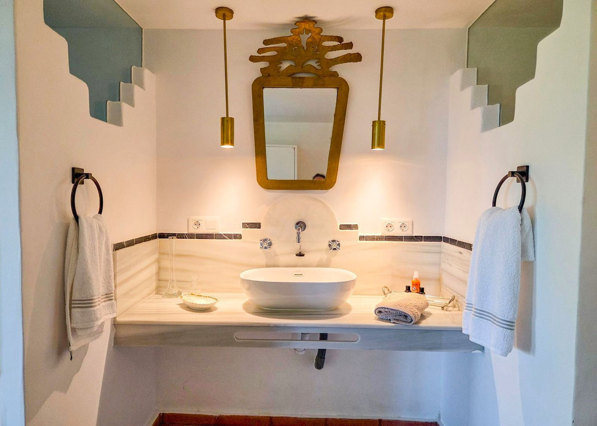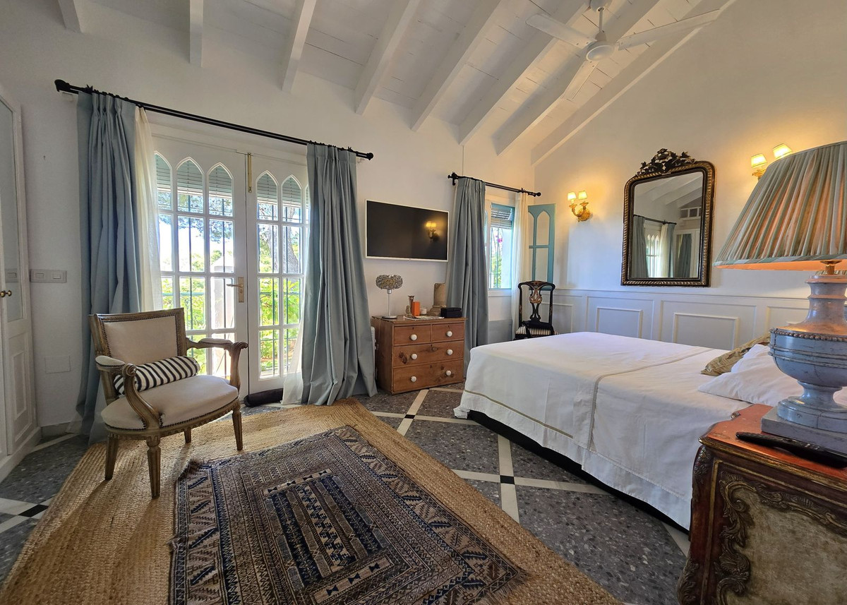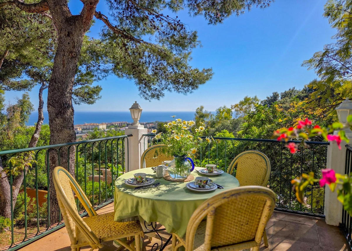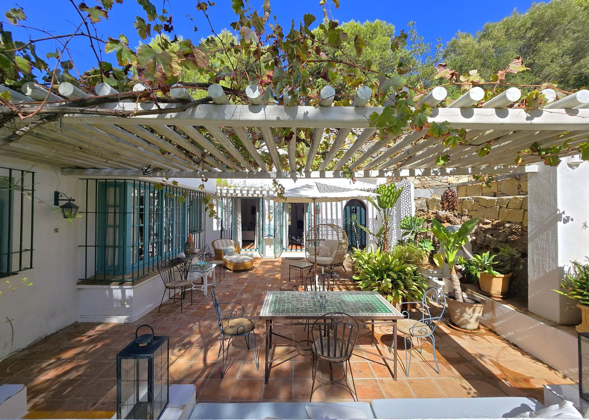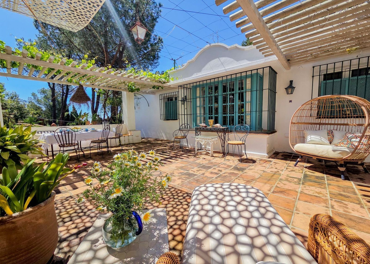 Située au milieu de pins parfumés dans le prestigieux quartier de Montúa, juste au-dessus de Marbella, au pied de la majestueuse montagne La Concha, cette charmante villa de style cortijo de plain-pied allie parfaitement le caractère andalou traditionnel au confort moderne.