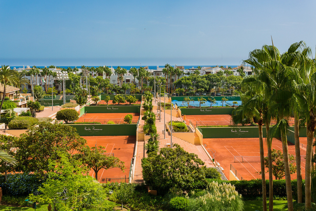 Newly renovated Luxury design, cozy apartment in prestigious Marbella Golden Mile urbanization "Balcon de Puente Romano", next to “Puente Romano Nobu”, “Marbella Club”, the beach and sea - 3-5 min walking distance. Bright and spacious apartment with a brand-new furniture and top-quality equipment, 2 modern bedrooms, 2 bathrooms, 2 big terraces, HD TV in each room, air conditioner with 3 different climate zones, 24 h access to newly renovated swimming pool. For your comfort and luxury living in tropic garden surround. Private underground parking is included.