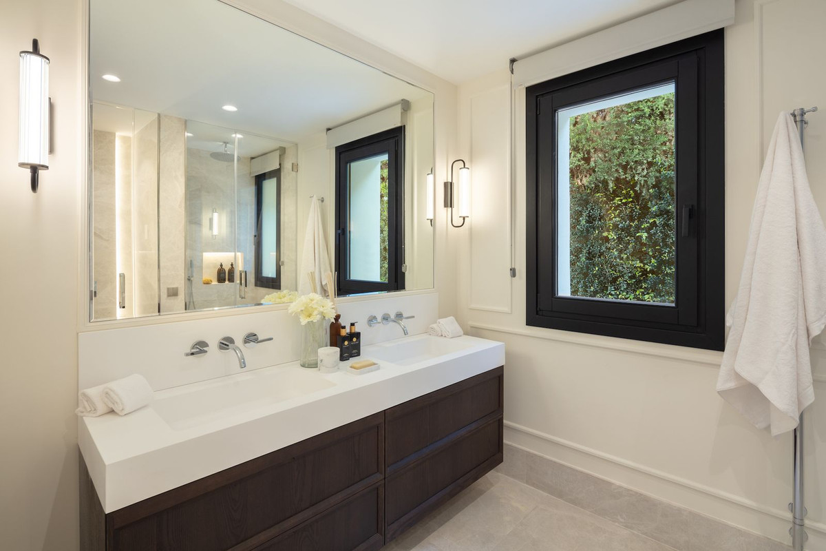 Bénéficiant d'un emplacement privilégié, nichée au pied de la montagne de La Concha et offrant une vue splendide sur la Méditerranée scintillante, la Villa Marusha est une résidence unique pouvant accueillir jusqu'à 12 personnes. Dès votre arrivée, vous serez séduit par le charme balnéaire et l'ambiance décontractée de la villa, qui dégagent une sensation de calme grâce à ses tons neutres et ses matériaux naturels. Son design ouvert relie harmonieusement les pièces, permettant une fluidité entre vie intérieure et vie extérieure. Ornée d'un élégant parquet, la villa respire la beauté et le raffinement, accentuant son charme unique. Le point fort de la propriété réside dans ses vastes espaces extérieurs, offrant de nombreuses possibilités de se prélasser au soleil ou de se détendre à l'ombre. Les spacieux espaces de vie extérieurs s'adaptent à toutes vos envies. La superbe piscine est l'endroit idéal pour se prélasser tout en admirant la vue imprenable sur la mer. À la tombée de la nuit, la cuisine moderne et élégante vous invite à préparer un festin somptueux, que vous pourrez savourer en plein air sur la terrasse couverte, admirant les couleurs resplendissantes du coucher de soleil. Au-delà de sa beauté époustouflante, la Villa Marusha a été soigneusement aménagée avec des équipements luxueux, dont une piscine intérieure, un sauna et une salle de sport entièrement équipée, pour un séjour des plus agréables. Idéale pour les familles ou les groupes d'amis, cette splendide villa offre six chambres doubles, chacune avec salle de bain attenante, garantissant intimité et confort à chaque invité.