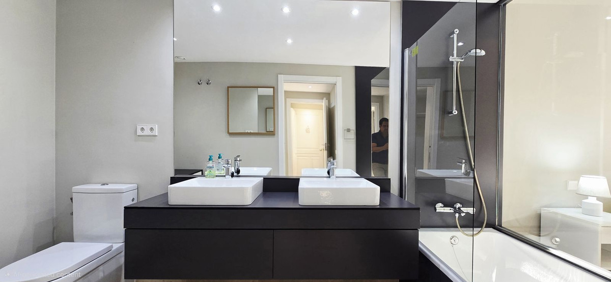 La terrasse s'étend sur deux niveaux : le niveau inférieur dispose d'un jacuzzi privé, idéal pour se détendre en toute intimité. Les deux chambres bénéficient d'un accès direct à la terrasse, baignant les pièces de lumière naturelle. La chambre d'amis est équipée de placards, tandis que la suite parentale dispose d'un dressing et d'une spacieuse salle de bains attenante avec double vasque et baignoire. Une salle de bains moderne avec douche à l'italienne complète ce bien.