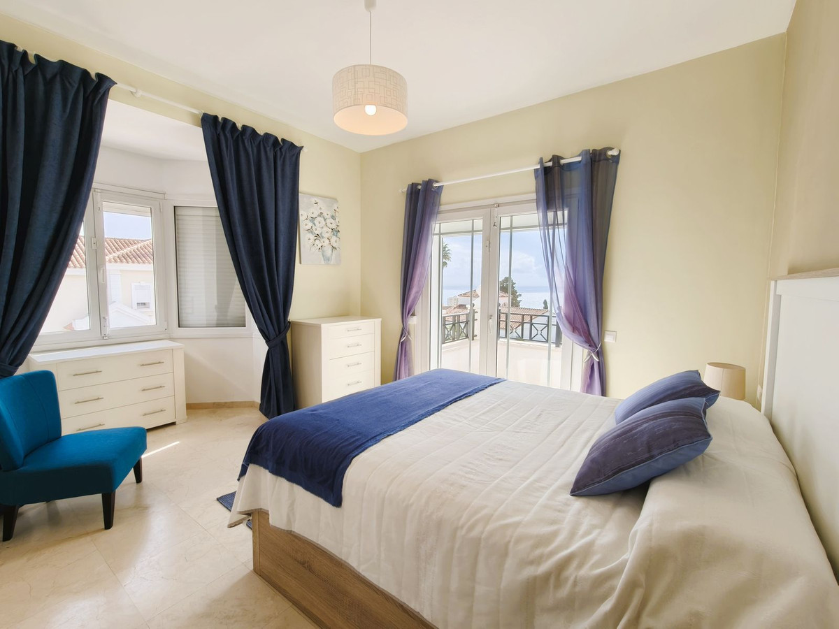 À l'intérieur, la maison offre trois chambres lumineuses (dont une suite parentale avec salle de bain privative), deux salles de bain complètes et des toilettes invités au rez-de-chaussée. Le salon et la salle à manger ouverts s'ouvrent harmonieusement sur une cuisine entièrement équipée avec un élégant îlot central, créant ainsi un espace lumineux et accueillant offrant une vue magnifique sur la mer et le jardin.