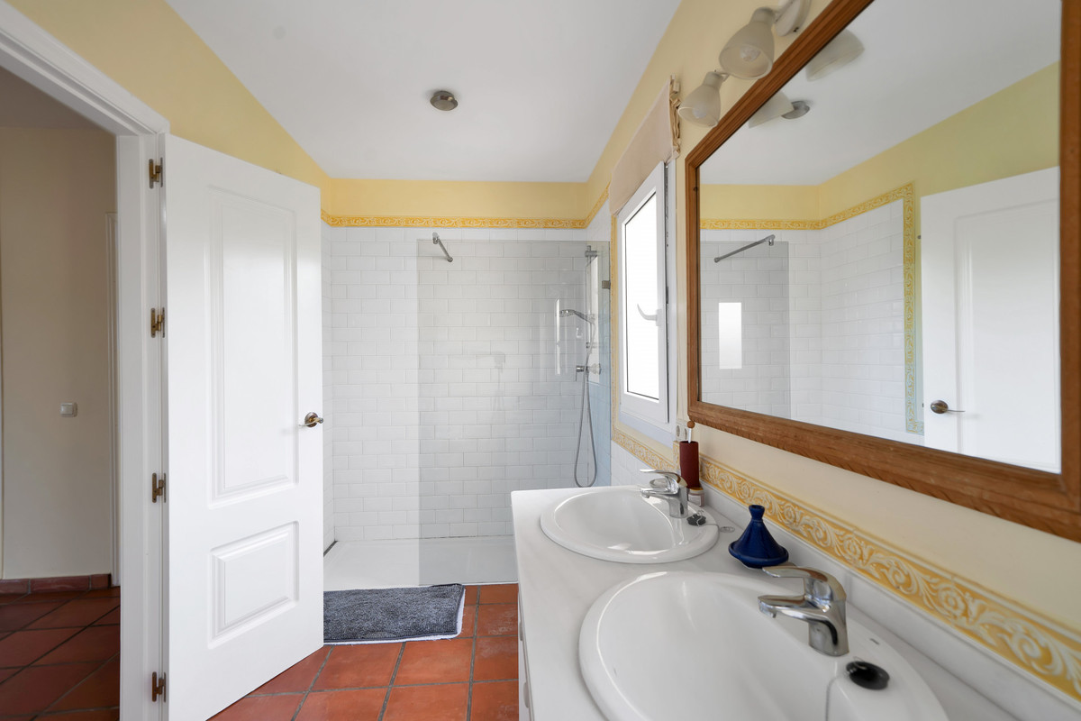 Au premier étage se trouve la suite parentale avec salle de bains privative et une grande terrasse offrant une vue panoramique. Deux autres chambres complètent l'étage, dont une avec sa propre terrasse et une salle de bains.