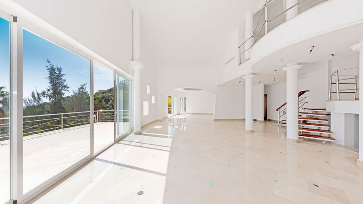 Maison individuelle située dans l'urbanisation El Almendro, à Benahavís. D'une superficie de 1 383 m² répartie sur quatre niveaux, elle comprend au rez-de-chaussée un vaste séjour, une salle à manger, une cuisine, un couloir d'accès au hall d'entrée, deux chambres avec salles de bains privatives et deux terrasses. L'étage supérieur, accessible depuis la rue par un porche d'entrée, se compose d'un hall d'entrée, d'un couloir, d'une chambre avec dressing, d'une salle de bains et d'une terrasse. Le demi-sous-sol abrite un garage spacieux pouvant accueillir plusieurs véhicules, une salle de jeux et deux chambres avec salles de bains privatives. Le sous-sol comprend un espace bar, un dressing, une salle de jeux et une salle de bains. La propriété s'étend sur un terrain de 3 868 m² comprenant un porche d'entrée, un parking et un grand jardin privatif avec piscine et jacuzzi, offrant une vue sur la mer. Elle est équipée de placards intégrés, d'une cuisine aménagée, d'une cheminée et d'une pré-installation pour la climatisation. Située dans un quartier résidentiel calme, à proximité de plusieurs terrains de golf.