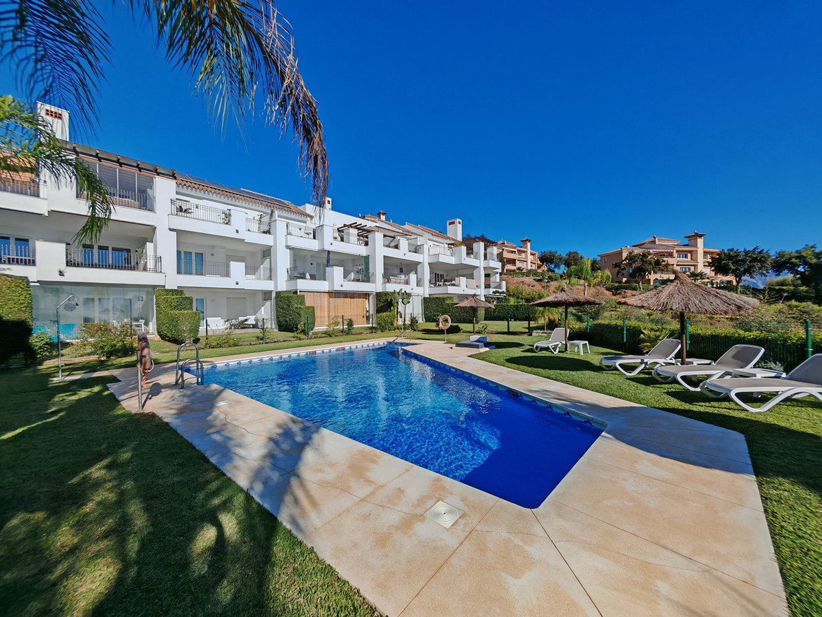 Appartement à vendre à La Mairena, Marbella, avec 2 chambres, 2 salles de bains (dont une attenante), exposé plein sud, donnant sur une piscine commune, un garage privé (1 place de parking) et un jardin commun. D'une superficie de 93,75 m² habitables et 29,65 m² de terrasse, il offre les prestations suivantes : vue mer, campagne, montagne, golf, accès Wi-Fi, accès sécurisé, double vitrage, interphone vidéo, terrasse privative, réservoir d'eau, placards intégrés, balcon, spa, accessible aux personnes à mobilité réduite. En excellent état.
