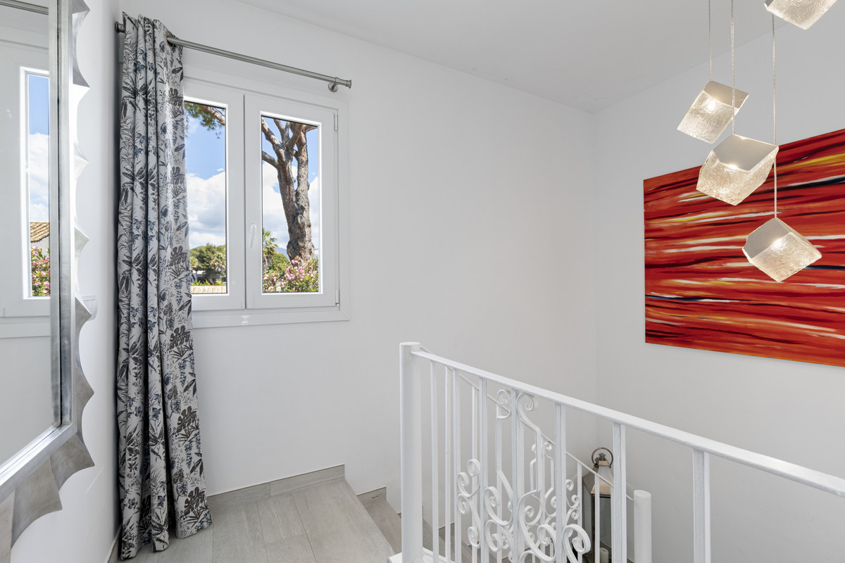 Nichée au cœur d'une magnifique pin parasol, cette maison rénovée avec goût offre un cadre de vie enviable, à seulement six minutes à pied de la plage.