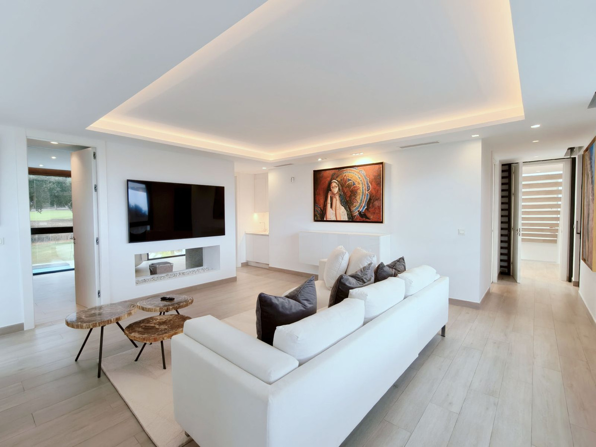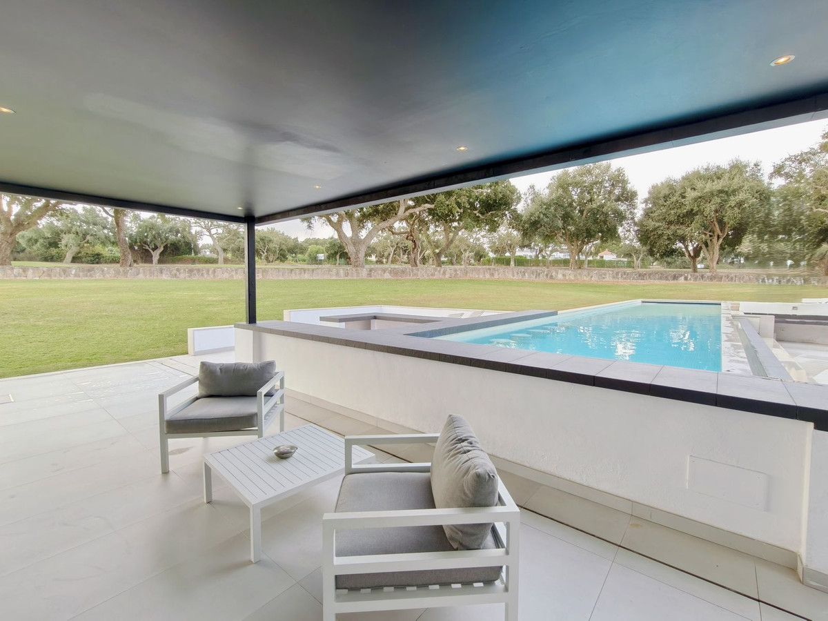 La propriété offre plusieurs terrasses avec vue panoramique sur le golf, un magnifique jardin paysager avec piscine privée chauffée et une élégante pergola pouvant accueillir deux voitures. À l'intérieur, la spacieuse suite parentale comprend un salon privé, une salle de bains raffinée avec baignoire et douche à l'italienne, ainsi qu'un dressing. De grandes baies vitrées inondent les espaces de lumière naturelle, créant une harmonie parfaite entre intérieur et extérieur.