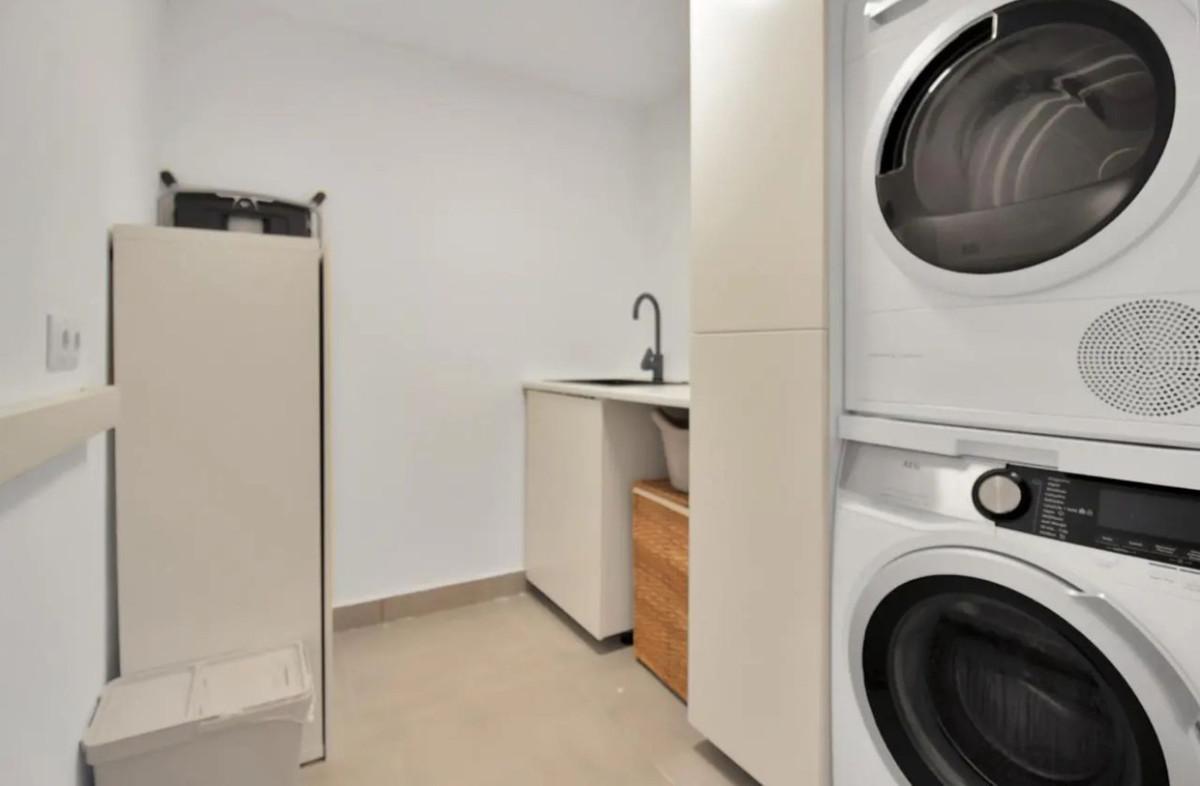 Rez-de-chaussée (60 m²) : Espace salon-salle à manger lumineux avec accès direct au jardin et à la piscine, ainsi qu'une cuisine design élégante et entièrement équipée.