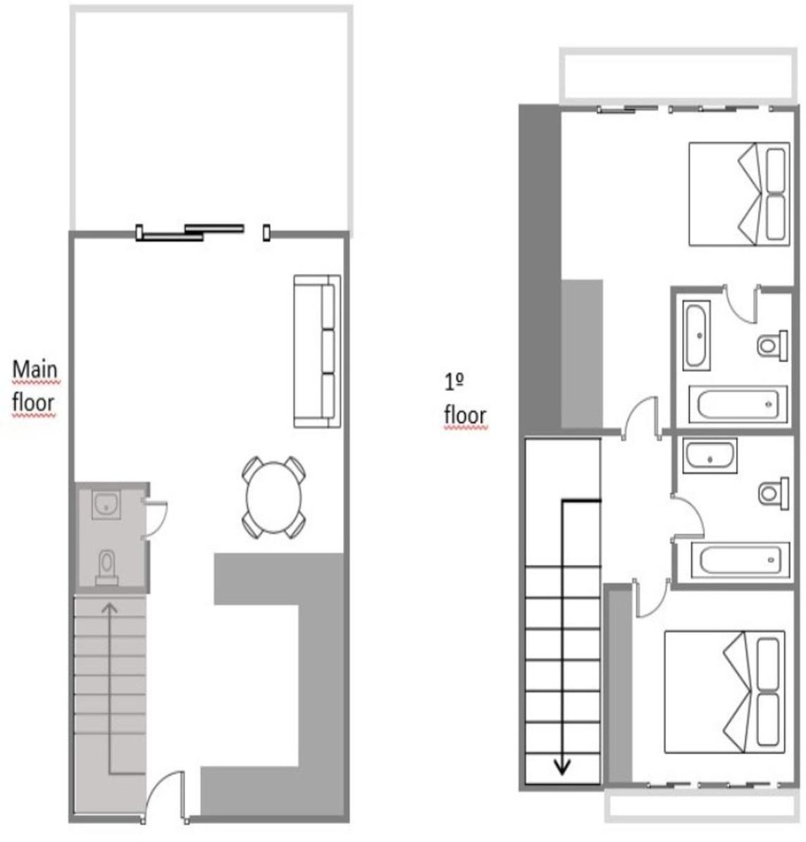 Répartie sur deux étages, la propriété comprend 2 chambres, 2 salles de bains (dont une attenante), des toilettes pour invités, plusieurs terrasses, un jardin privé avec accès direct à la piscine commune et une place de parking incluse.