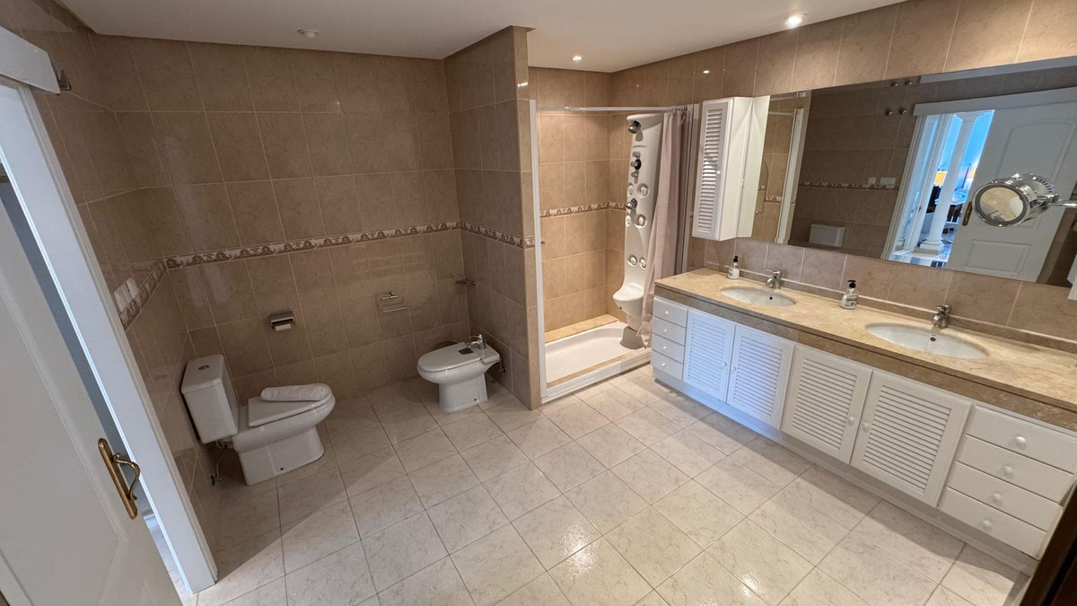 Adapté à une star de cinéma, cet appartement de trois chambres décoré avec goût a été conçu par le constructeur de ce complexe fermé de trois chambres avec beaucoup d'espace de vie. La propriété comprend : Hall d'entrée avec vestiaire invités menant à un immense salon avec coin repas donnant sur la terrasse, cuisine de luxe très spacieuse entièrement équipée, chambre principale en suite avec accès à la terrasse, dressing aménagé menant à une somptueuse salle de bain avec douche toute ronde. jets, baignoire jacuzzi et sauna spécialement conçu, deux autres chambres doubles avec salle de bains privative et toilettes invités. Piscine commune à l'usage de cet appartement et seulement de quatre autres.