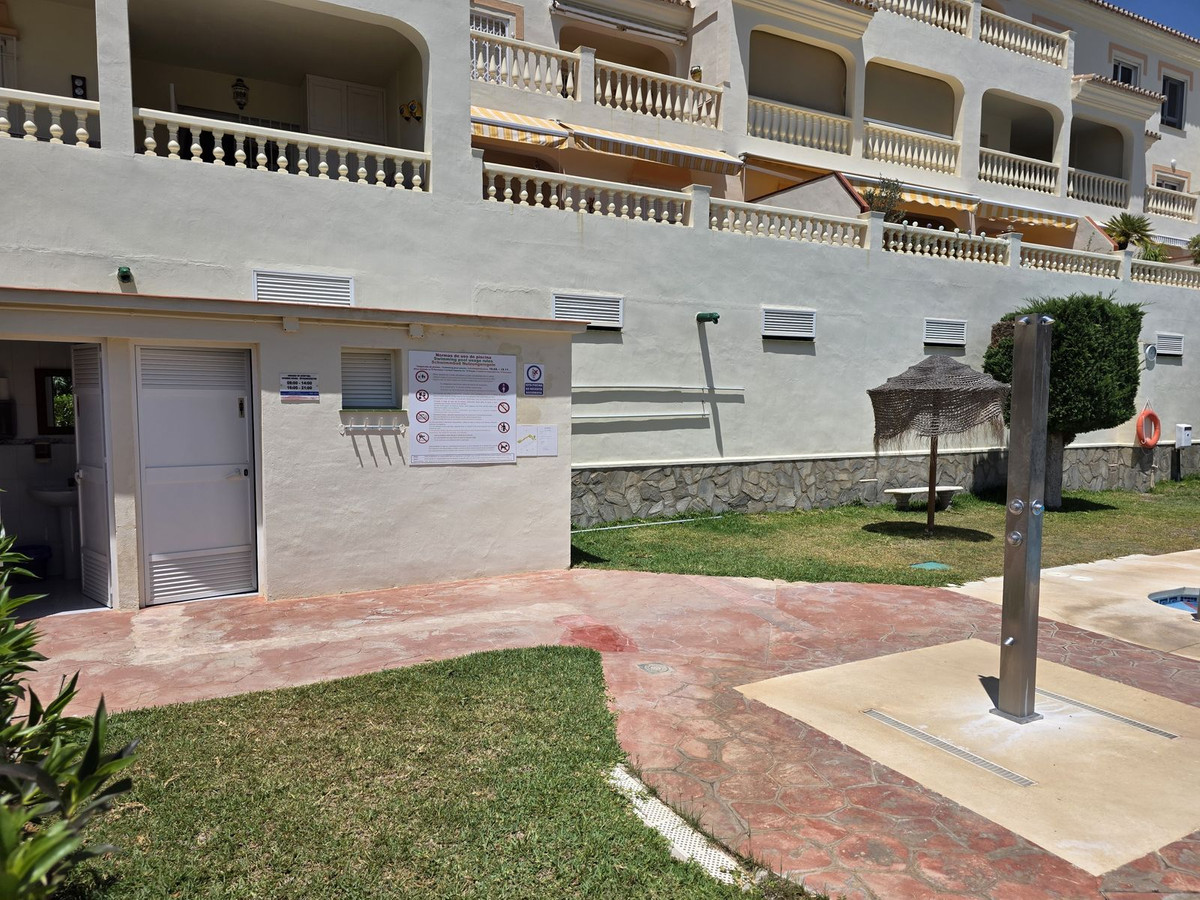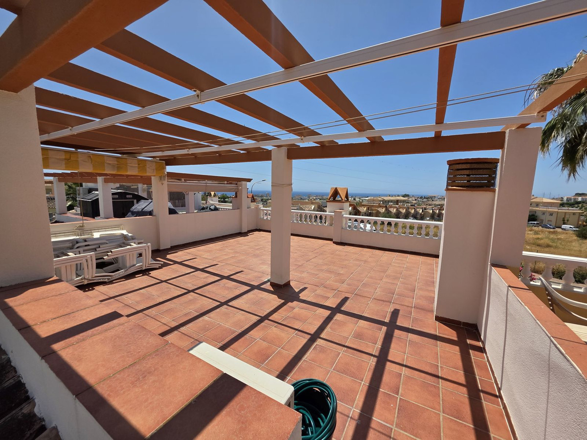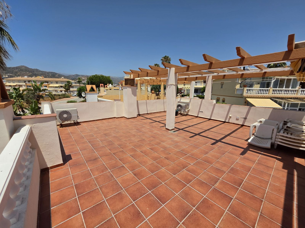 Superbe emplacement pour cette maison de ville à Torrox Costa, à proximité de la plage et de toutes les commodités. Une école publique se trouve également à quelques minutes. La maison dispose d'un patio à l'entrée, d'une grande terrasse à l'arrière et d'une vaste terrasse sur le toit offrant une vue imprenable sur la mer et la côte. Elle comprend deux chambres, une salle de bain complète, une cuisine ouverte entièrement équipée, un coin repas et un grand séjour donnant accès à la terrasse privative et au jardin commun. Orientée sud-ouest, elle bénéficie d'une vue magnifique sur la côte. Cette maison fait partie de la résidence Torrox Park, qui propose des jardins et une grande piscine. À environ 30 minutes de l'aéroport et du centre-ville de Malaga et à seulement 10 minutes du célèbre village de Nerja. La surface habitable se répartit comme suit : 70 m² habitables, 16 m² de terrasse, 55 m² de terrasse sur le toit et 4 m² d'escalier.