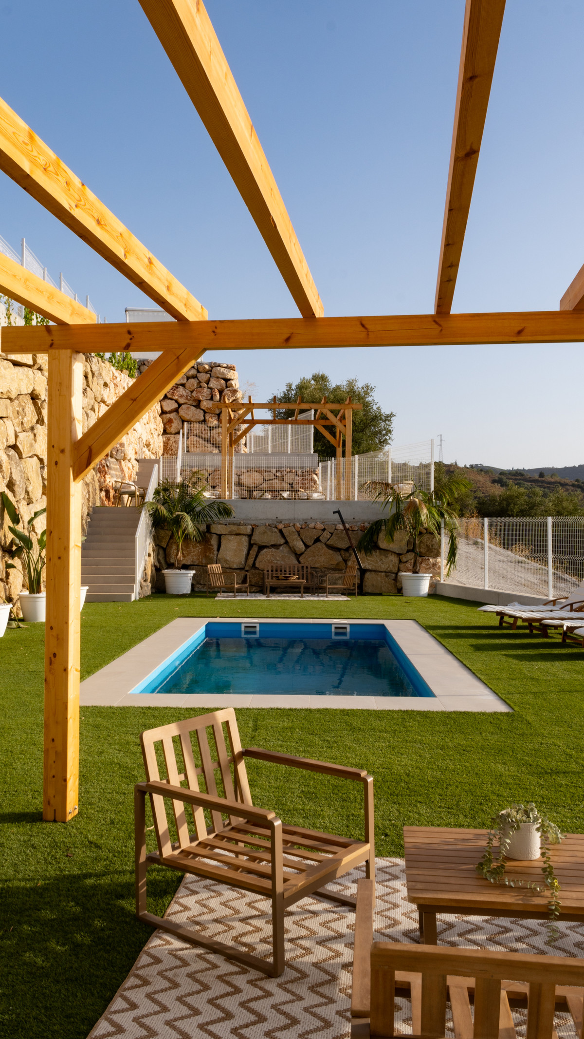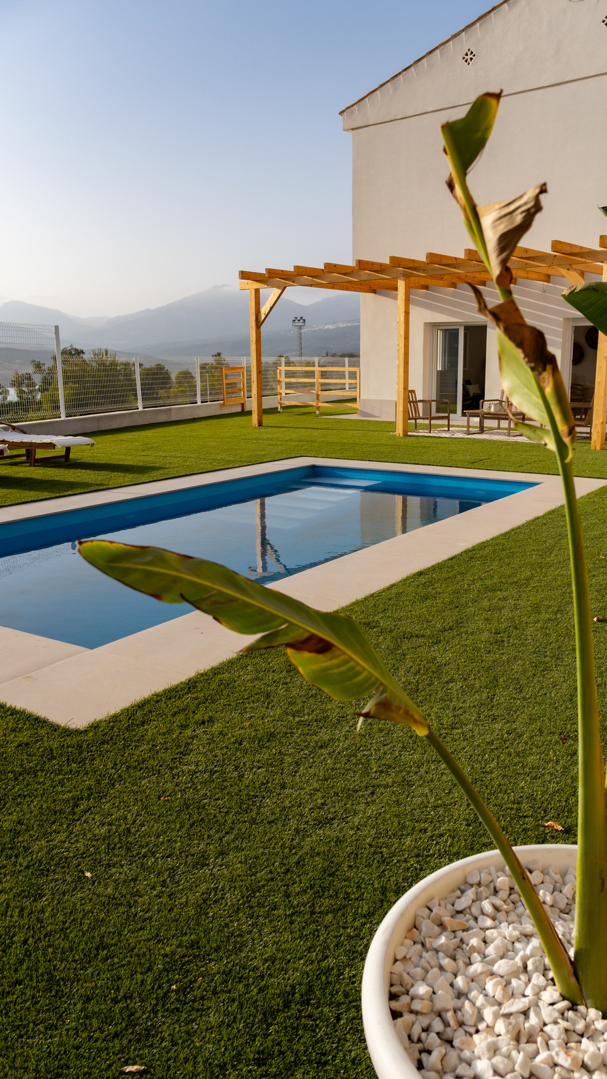 Uitzicht: Land, Tuin, Zwembad