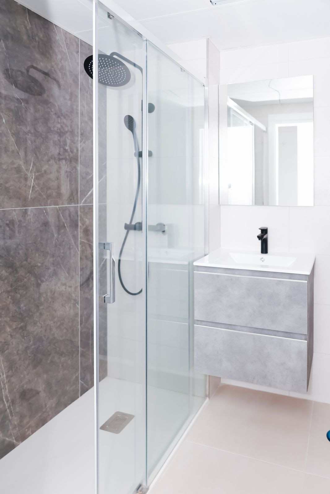 Meubles de salle de bains avec miroirs et parois de douche en verre