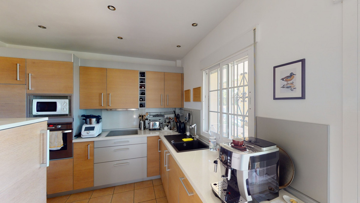Une vue imprenable, une orientation sud-ouest idéale : la promesse d'un bonheur absolu. Cette villa d'exception, construite avec des matériaux de très haute qualité, offre un cadre idyllique avec un magnifique jardin comprenant spa, sauna et piscine, ainsi qu'une luxueuse cuisine d'été avec coin repas intégré. Située entre Algarrobo et Sayalonga, cette villa unique vous propose tout cela et bien plus encore. Son emplacement privilégié garantit une intimité totale et vous offre une vue romantique sur le coucher du soleil, se reflétant tantôt sur la Méditerranée, tantôt, selon la saison, sur le fabuleux paysage montagneux de Malaga. Un chemin privé asphalté, bordé de pins, mène à l'imposante entrée de la propriété, où un îlot de palmiers se dresse au milieu d'un rondin. Plusieurs places de parking, un garage et un grand abri voiture complètent le rez-de-chaussée. Au premier étage se trouvent le salon avec une cheminée séparée, des toilettes invités, une buanderie, une cuisine moderne donnant sur une véranda spacieuse et parfaitement équipée, ainsi qu'une très belle chambre avec salle de bains privative. À l'étage de la villa se trouve la suite parentale avec une spacieuse salle de bains privative et un dressing. La propriété est équipée du chauffage central, de la climatisation et d'une cheminée. Le terrain est agrémenté d'une variété d'arbres fruitiers, de palmiers, de plantes tropicales et de pins. La plage et la mer, ainsi que le golf et le port de plaisance de Caleta, sont à 15 minutes, et l'aéroport de Malaga à seulement 40 minutes. Nous serions ravis de vous présenter prochainement cette propriété de rêve, en personne ou par visite virtuelle. Car ce monde est unique, à l'image de notre Axarquía. En Andalousie. Sur la Costa del Sol. Ici, sous le soleil…