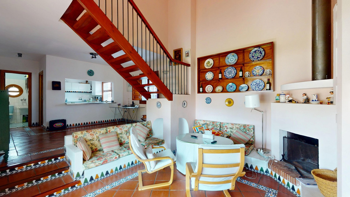 Cette magnifique villa espagnole s'étend sur deux étages et comprend trois chambres, dont une suite parentale impressionnante, et deux salles de bains. Elle allie le charme andalou traditionnel au confort moderne. Son design d'inspiration méditerranéenne se reflète dans les sols en terre cuite, les chaleureux éléments en bois et les espaces lumineux et aérés. Le séjour bénéficie d'une configuration unique en demi-niveaux avec des frises de carrelage décoratives, une cheminée accueillante et des étagères intégrées. Un élégant escalier en bois mène à l'étage, tandis que la cuisine ouverte communique harmonieusement avec le séjour, idéale pour la vie de famille ou pour recevoir. Les chambres sont spacieuses et disposent de placards intégrés pour un rangement optimal. De grandes fenêtres avec volets en bois traditionnels laissent entrer la lumière naturelle et offrent des vues pittoresques sur les environs. Les salles de bains sont pleines de caractère, l'une d'elles étant dotée d'un sol à damier bleu et blanc avec des frises de carrelage décoratives. À l'extérieur, la villa offre un jardin privé avec piscine, un espace détente idéal pour se relaxer, un garage et une terrasse sur le toit avec une vue imprenable, parfaite pour profiter du climat et des paysages de la Costa del Sol. Située à Chilches, cette propriété est idéale comme résidence principale, résidence secondaire ou investissement locatif. Nous sommes ravis de pouvoir vous présenter prochainement ce bien d'exception, en personne ou virtuellement. Car ce monde est unique, à l'image de notre Axarquía. En Andalousie. Sur la Costa del Sol. Ici, la vie est belle et ensoleillée…