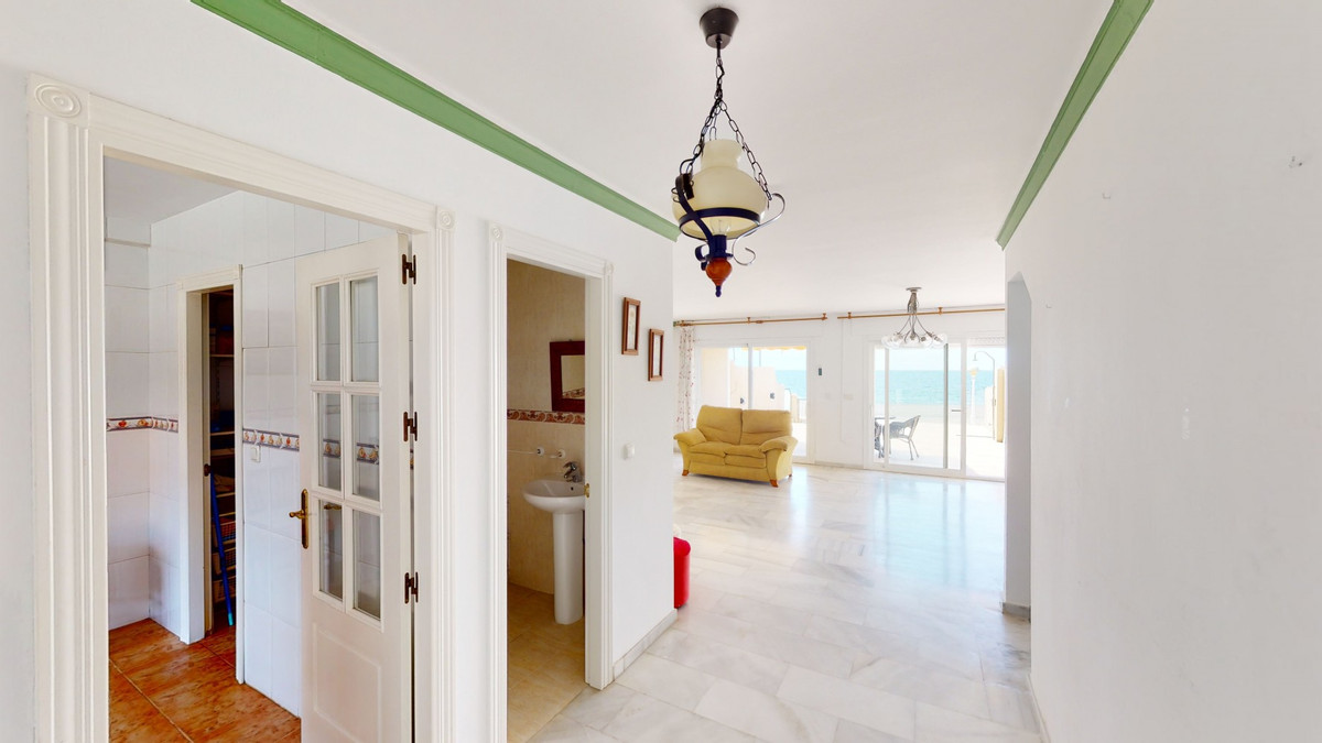Cette magnifique maison de ville en bord de mer offre une vue spectaculaire sur la plage et la promenade. Elle comprend un séjour, une cuisine, quatre chambres, deux salles de bains, des toilettes, trois terrasses, un balcon, un garage double et un cellier. La maison est répartie sur trois étages et un sous-sol où se trouve le garage. L'entrée se situe au rez-de-chaussée, où un couloir dessert la cuisine, les toilettes et le séjour qui s'ouvre sur une grande terrasse. Cette même terrasse donne accès à la promenade et à la plage. Le premier étage comprend trois chambres et deux salles de bains. Deux des chambres offrent une vue imprenable sur la mer. La suite parentale dispose d'un dressing, d'une terrasse et d'une salle de bains privative. La troisième salle de bains est partagée par les deux autres chambres. Au deuxième étage se trouve une pièce avec deux grandes terrasses, l'une orientée vers la montagne et l'autre vers la mer, offrant un panorama exceptionnel. Au sous-sol se trouve un grand garage double et un espace de rangement conséquent. Un grand cellier est situé juste en face du garage. Cette propriété est idéale si vous rêvez de vivre face à la mer. Le bruit et la sérénité des vagues sont incomparables. Nous sommes ravis de pouvoir vous présenter prochainement ce bien d'exception, en personne ou en visite virtuelle. Car ce lieu est unique, à l'image de notre Axarquía. En Andalousie. Sur la Costa del Sol. Ici, sous le soleil…