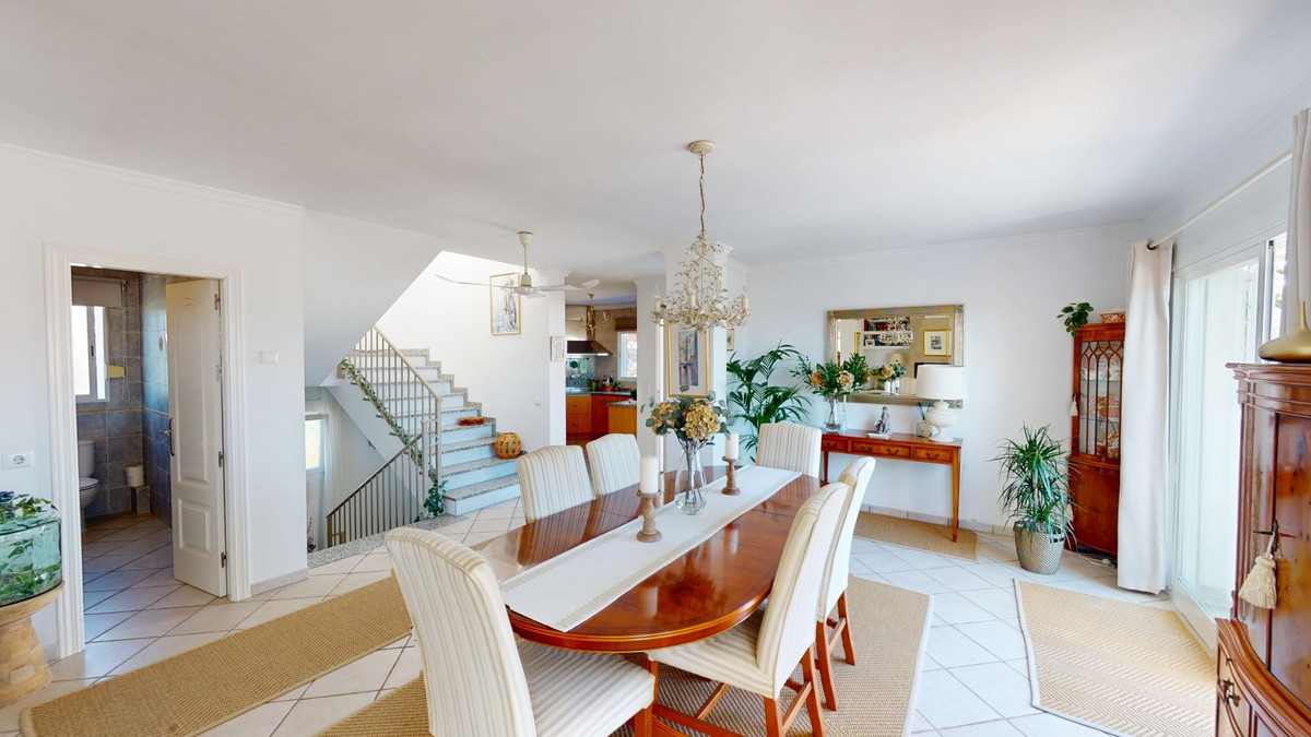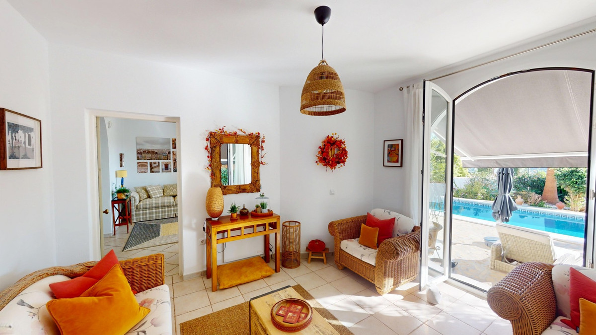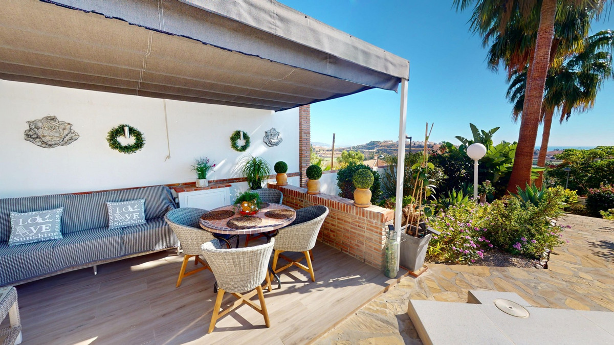 Découvrez un monde où luxe et tranquillité se conjuguent dans cette magnifique villa individuelle, située dans le quartier résidentiel paisible d'El Capitán, près de Torre del Mar et d'Almayate, sur la côte est de Malaga. Son emplacement est idéal pour ceux qui recherchent calme et intimité tout en restant proches des commodités. En quelques minutes seulement, vous rejoindrez les plages d'Almayate et de Torre del Mar, où vous trouverez de charmants restaurants, des boutiques et des promenades animées en bord de mer. La ville de Malaga et l'aéroport sont à seulement 35 minutes en voiture. Nichée sur un terrain privé de 811 m², la villa offre 310 m² d'espace de vie élégant, entouré d'un jardin facile d'entretien, clos d'un mur pour une intimité et une sécurité optimales. Un portail privé permet l'accès aux véhicules, et l'espace extérieur comprend une piscine étincelante, une vaste terrasse couverte pour se détendre à l'ombre, et un charmant coin salon sous une coupole, parfait pour savourer un verre ou un bon livre. À l'intérieur, la maison impressionne par ses espaces généreux et sa luminosité naturelle. Le hall d'entrée mène à un garage double avec espace de rangement supplémentaire. Au rez-de-chaussée, vous trouverez un vaste séjour avec un coin salon attenant et de larges baies vitrées s'ouvrant sur la piscine et le jardin, ainsi qu'une salle de bains et une chambre idéale pour les invités. À l'étage, le cœur de la maison se dévoile : un espace lumineux et décloisonné réunissant la cuisine, la salle à manger et le séjour. La lumière naturelle inonde la pièce à travers de grandes fenêtres, créant une atmosphère chaleureuse et accueillante, propice à la détente en famille comme aux réceptions élégantes. La cuisine entièrement équipée dispose d'élégants placards en bois, d'un plan de travail en granit et offre une vue sur le jardin. Depuis le séjour, vous accédez à un grand balcon offrant une vue imprenable sur la mer Méditerranée. Cet étage comprend également deux chambres, une salle de bains spacieuse et des toilettes séparées. Une terrasse donnant sur la rue est accessible depuis ce niveau ou par un escalier extérieur, offrant un espace extérieur supplémentaire pour se réunir ou profiter de soirées paisibles. Au dernier étage, une terrasse sur le toit couronne la villa, offrant une vue panoramique sur la mer, les montagnes et la campagne environnante – un lieu idéal pour admirer les couchers de soleil et la sérénité des soirées andalouses. Cette villa allie élégance, confort et charme méditerranéen : un véritable havre de paix où chaque jour est une invitation au voyage. Nous serions ravis de vous présenter prochainement cette propriété de rêve, que ce soit en personne ou par le biais d’une visite virtuelle. Car ce monde est unique, à l’image de notre Axarquía. En Andalousie. Sur la Costa del Sol. Ici, la vie est douce et ensoleillée.