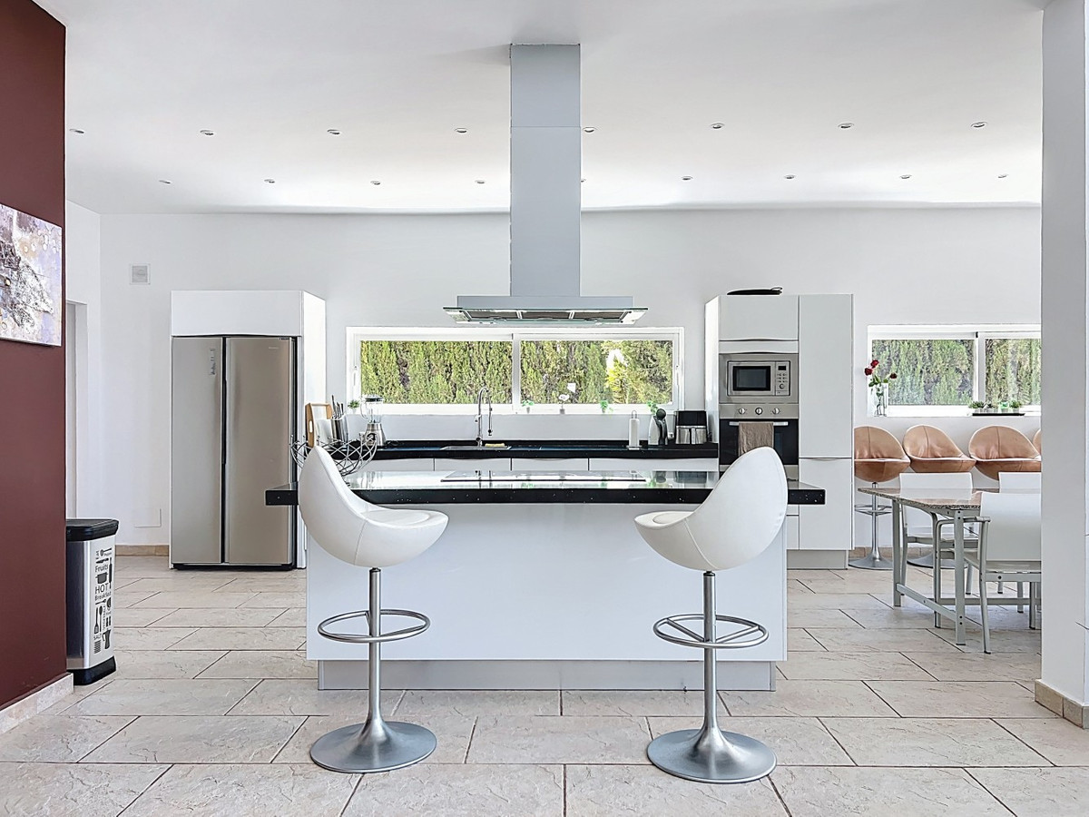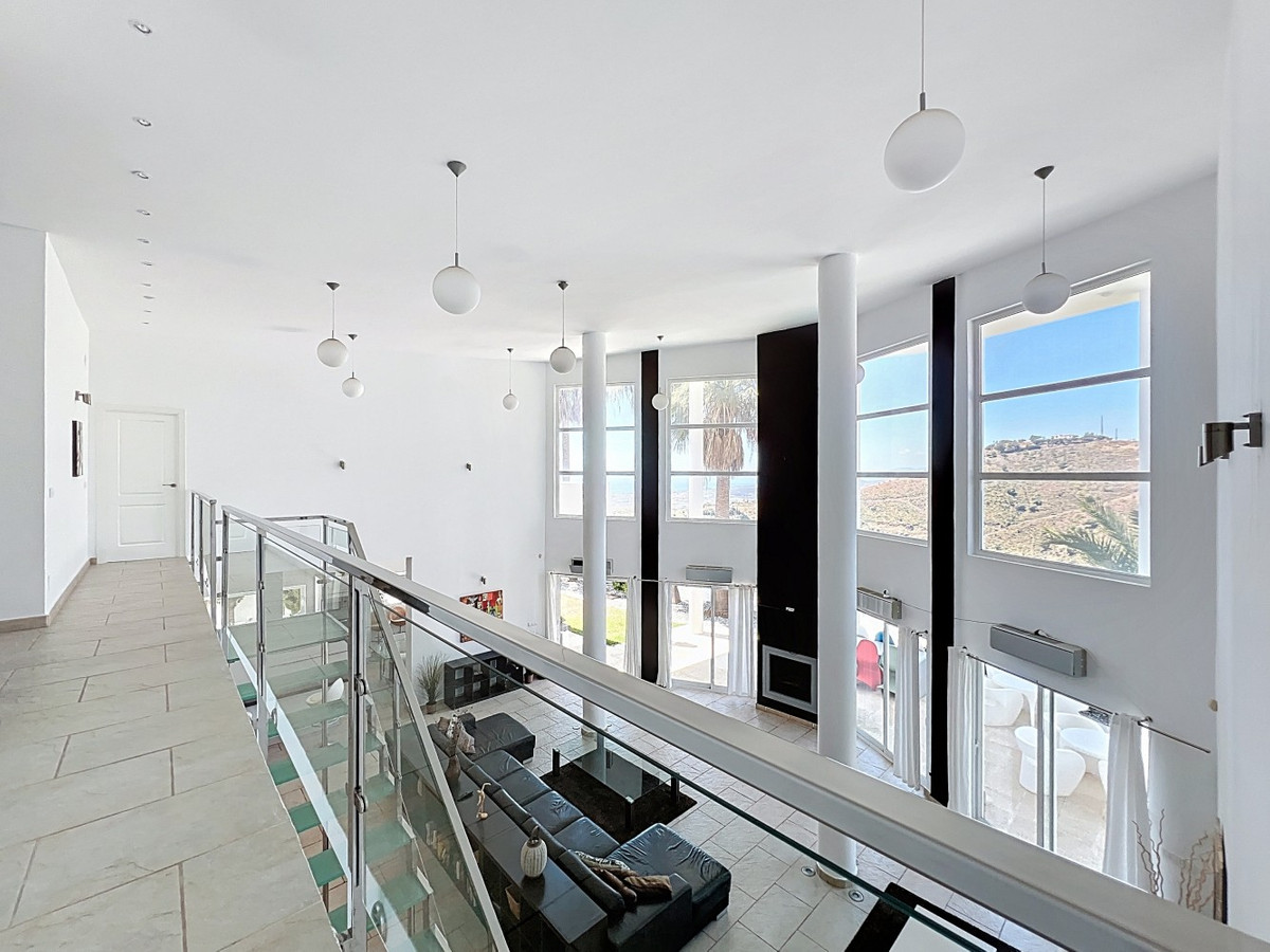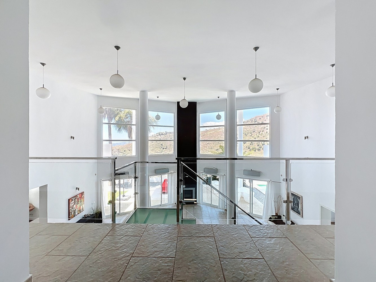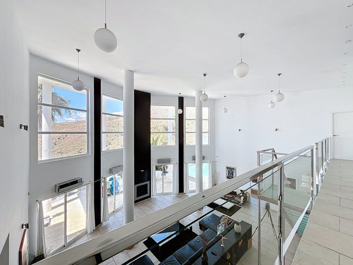Cette impressionnante villa à Malaga, en Espagne, offre un mélange harmonieux d'espace, de luxe et de design moderne. S'étendant sur 395,8 m² répartis sur deux niveaux, la propriété comprend 7 chambres et 5 salles de bains, ce qui la rend idéale pour les familles nombreuses ou pour ceux qui aiment recevoir. Le rez-de-chaussée, d'une superficie de 212,7 m², abrite un magnifique espace de vie ouvert avec une impressionnante hauteur sous plafond. De grandes baies vitrées et des portes coulissantes en verre inondent l'espace de lumière naturelle et créent une transition fluide entre l'intérieur et l'extérieur. Le salon est dominé par une élégante cheminée et agrémenté d'un mobilier contemporain et confortable. La cuisine ultramoderne est un véritable rêve pour les gourmets, avec ses meubles blancs laqués, ses appareils haut de gamme et son îlot central spacieux avec coin repas. De larges fenêtres offrent une vue imprenable sur le paysage environnant pendant la préparation des repas. Un jardin zen intérieur, agrémenté de sable et de plantes décoratives, apporte une touche de sérénité au rez-de-chaussée. Les couloirs sont larges et lumineux, et leurs murs sont ornés d'œuvres d'art soigneusement sélectionnées. En accédant au deuxième étage par un escalier moderne aux balustrades en verre, vous découvrirez 183 m² d'espace de vie supplémentaire. La chambre principale, spacieuse (26,9 m²), offre une vue imprenable et une salle de bains privative. Les salles de bains de la propriété, élégantes et modernes, sont dotées de carrelage grand format, de douches à l'italienne et d'équipements contemporains. Certaines présentent des éléments de design originaux, comme des rideaux de douche imprimés de journaux, qui apportent une touche ludique à l'esthétique minimaliste. À l'extérieur, la propriété bénéficie d'une position dominante offrant une vue panoramique sur les montagnes et la campagne environnantes, ainsi que sur la Méditerranée scintillante. L'espace extérieur comprend une grande piscine, idéale pour se détendre ou recevoir tout en profitant du paysage à couper le souffle. La propriété est facilement accessible, assurant une liaison aisée avec les commodités et les attractions touristiques à proximité. De vastes terrasses offrent un espace généreux pour la détente et les loisirs en plein air, faisant de cette villa le lieu idéal pour profiter du climat espagnol avec style. Dans toute la villa, la palette de couleurs est principalement blanche, créant une atmosphère lumineuse et aérée parfaitement adaptée au climat espagnol. Des touches de couleur dans le mobilier et les œuvres d'art ajoutent un intérêt visuel sans perturber l'ambiance sereine. Cette villa représente le summum de l'art de vivre espagnol moderne, alliant intérieurs spacieux, finitions haut de gamme et vues à couper le souffle dans un ensemble impressionnant : une véritable maison de rêve. Nous sommes ravis de pouvoir vous présenter prochainement cette propriété d'exception, en personne ou par visite virtuelle. Car ce monde est unique, à l'image de notre Axarquía. En Andalousie. Sur la Costa del Sol. Ici, sous le soleil…