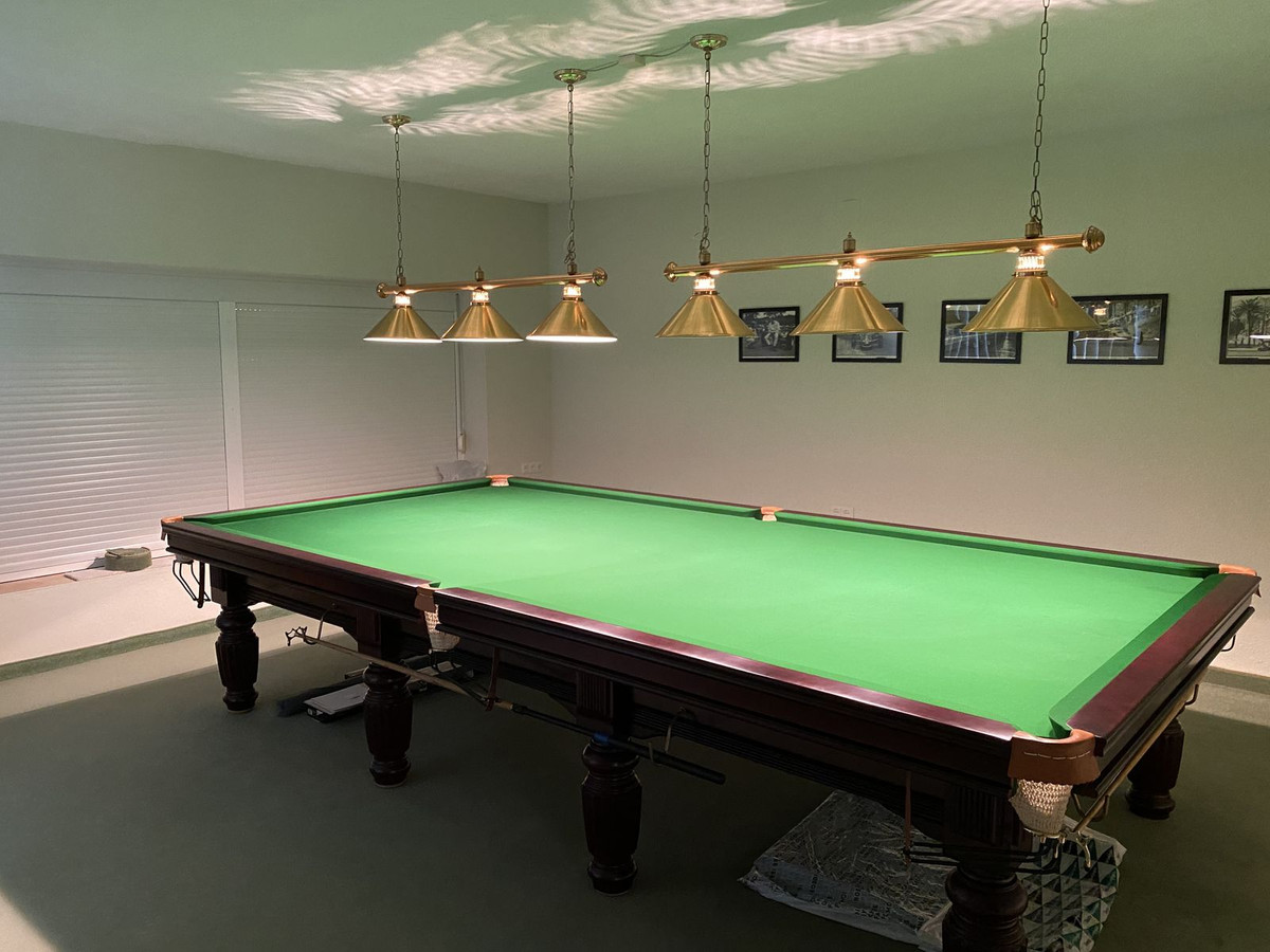 Depuis la salle à manger se trouve un placard de rangement et un accès à une autre grande salle de réception actuellement utilisée comme salle de billard avec une table de taille réglementaire en parfait état et équipée d'un éclairage.