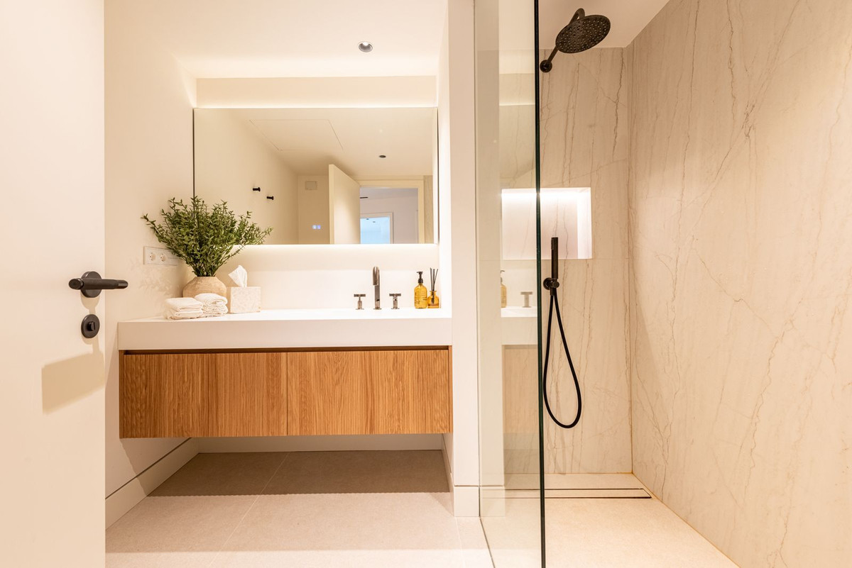 Parmi les autres équipements haut de gamme, citons le système audio Sonos dans tout l'appartement, le chauffage au sol et une grande cave à vin, le tout conçu pour le confort et la commodité.