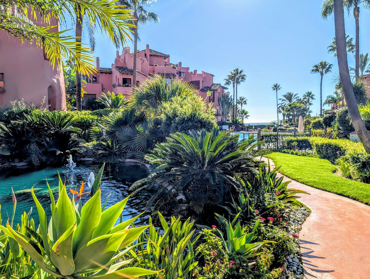 Ce complexe balnéaire, Menara, est entouré d'autres résidences de standing qui bénéficient toutes d'un parc public aménagé avec une ancienne tour de guet. Plusieurs commodités sont accessibles à pied, comme le restaurant réputé Tikitano, ainsi que des boutiques et un bar dans un complexe voisin. D'autres services sont disponibles à quelques minutes en voiture. La ville d'Estepona est à 6 minutes en voiture de Menara et l'aéroport de Malaga est facilement accessible par l'autoroute à péage AP-7.