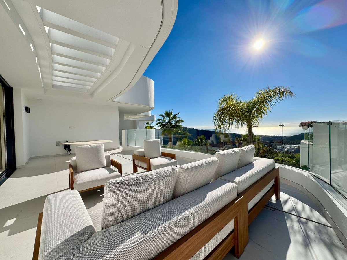 The apartment is located in Granados, one of the most prestigious residences within the luxurious Palo Alto estate, nestled against the green hills of Ojén, just above Marbella. Here, you live in complete tranquility, surrounded by nature and overlooking panoramic views of the Mediterranean Sea. This move-in-ready apartment is ideal for anyone seeking comfort, design, and a carefree lifestyle under the Costa del Sol sun.