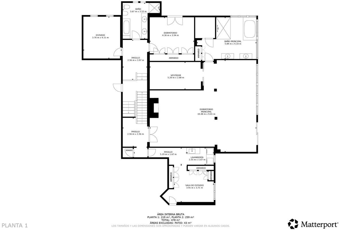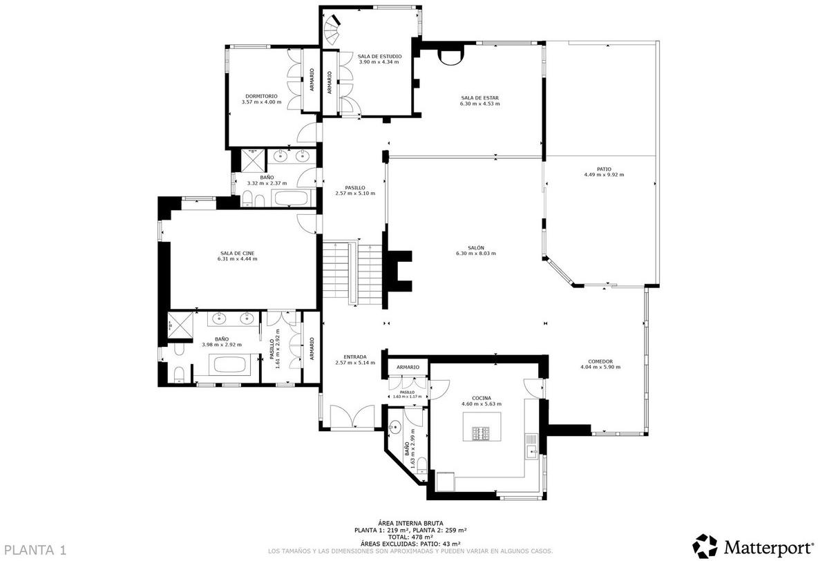 Le rez-de-chaussée comprend un garage double, un local technique, un espace de rangement, des chambres pour les invités et le personnel, un des salons et une véranda. Au premier étage, vous trouverez le hall d'entrée, des toilettes invités, une cuisine-salle à manger, le salon principal donnant sur une terrasse couverte, une bibliothèque et une aile réservée aux chambres.