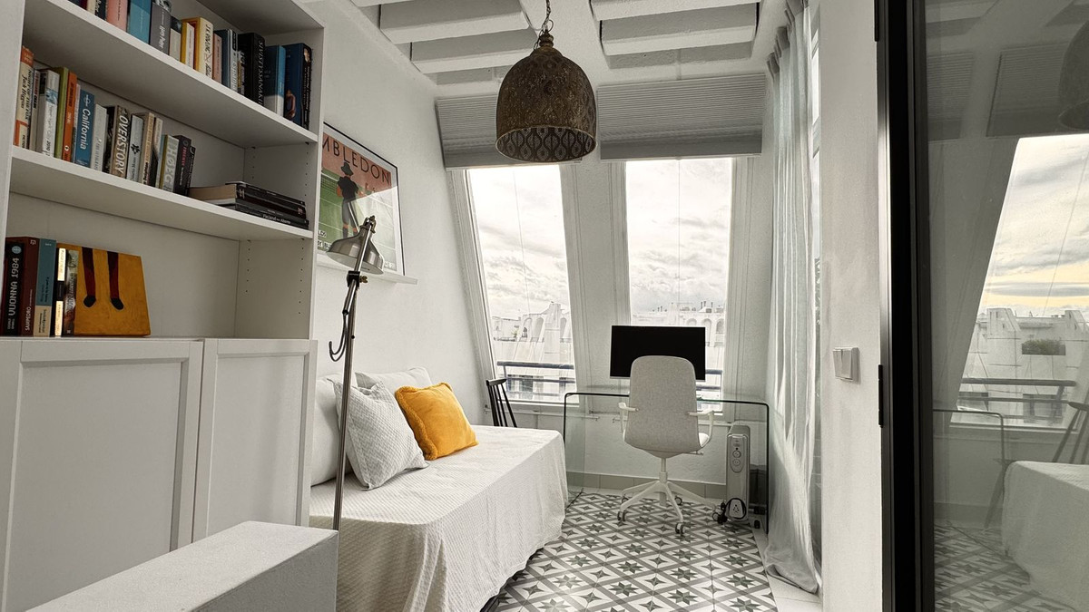 La terrasse sur le toit est sans conteste le point fort : un solarium privé spectaculaire avec espace barbecue et vue panoramique sur la mer et les montagnes. Ce niveau comprend également un studio indépendant, idéal comme chambre supplémentaire, bureau ou coin lecture.