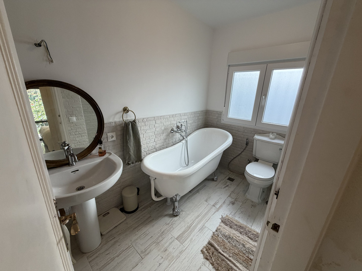 Cette propriété, agencée sur deux niveaux, offre trois terrasses réparties sur les deux étages. Elle comprend actuellement deux chambres, avec la possibilité d'en créer une troisième. Chaque niveau est configuré comme une unité indépendante, avec une chambre, une salle de bains et une cuisine au rez-de-chaussée et à l'étage ; cependant, la maison peut facilement être rénovée pour former un seul et même espace. Le spacieux séjour donne directement sur la terrasse et le jardin, et la salle de bains du rez-de-chaussée a été récemment rénovée. Cette maison vous offre la liberté de repenser et de rénover l'intérieur selon vos goûts.