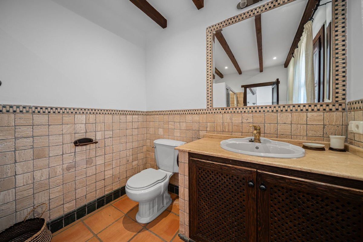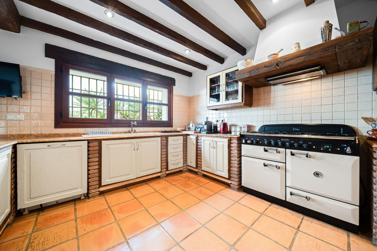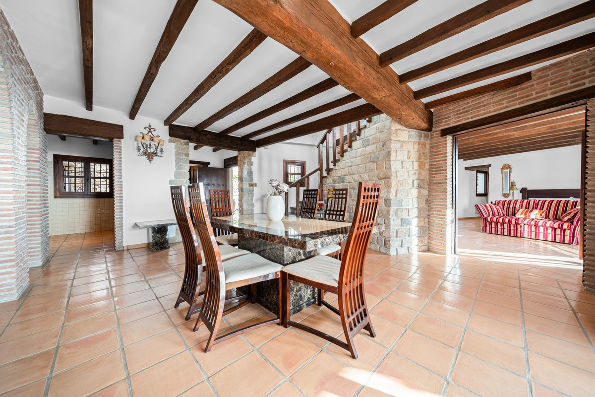 La villa est en excellent état et séduit par son caractère andalou authentique : de magnifiques poutres en bois, des détails en brique et en pierre, et une élégante finition rustique qui crée une atmosphère chaleureuse et accueillante.