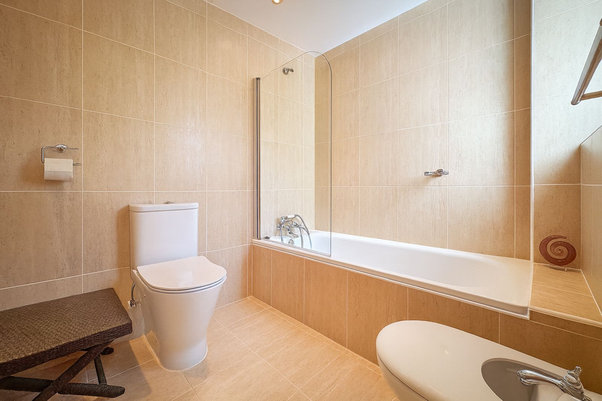 Une salle de bains et des toilettes ont également été installées, ce qui permet de créer facilement un appartement séparé avec entrée privée et accès direct à la terrasse et à la piscine.