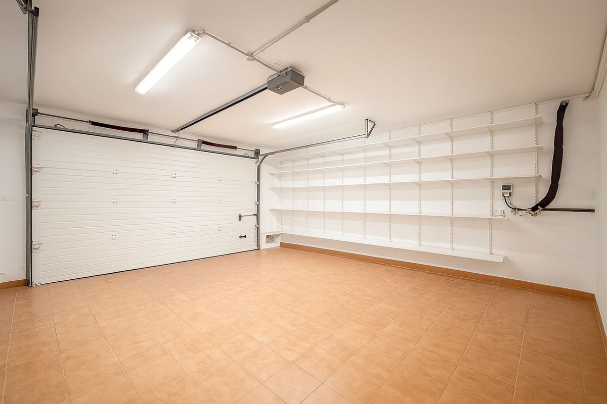 La villa comprend un vaste hall d'entrée avec de hauts plafonds et de grandes fenêtres laissant entrer une abondante lumière naturelle. On y trouve également des toilettes pour les invités, ainsi qu'un accès direct du garage à la cuisine, ce qui facilite grandement le transport des courses !
