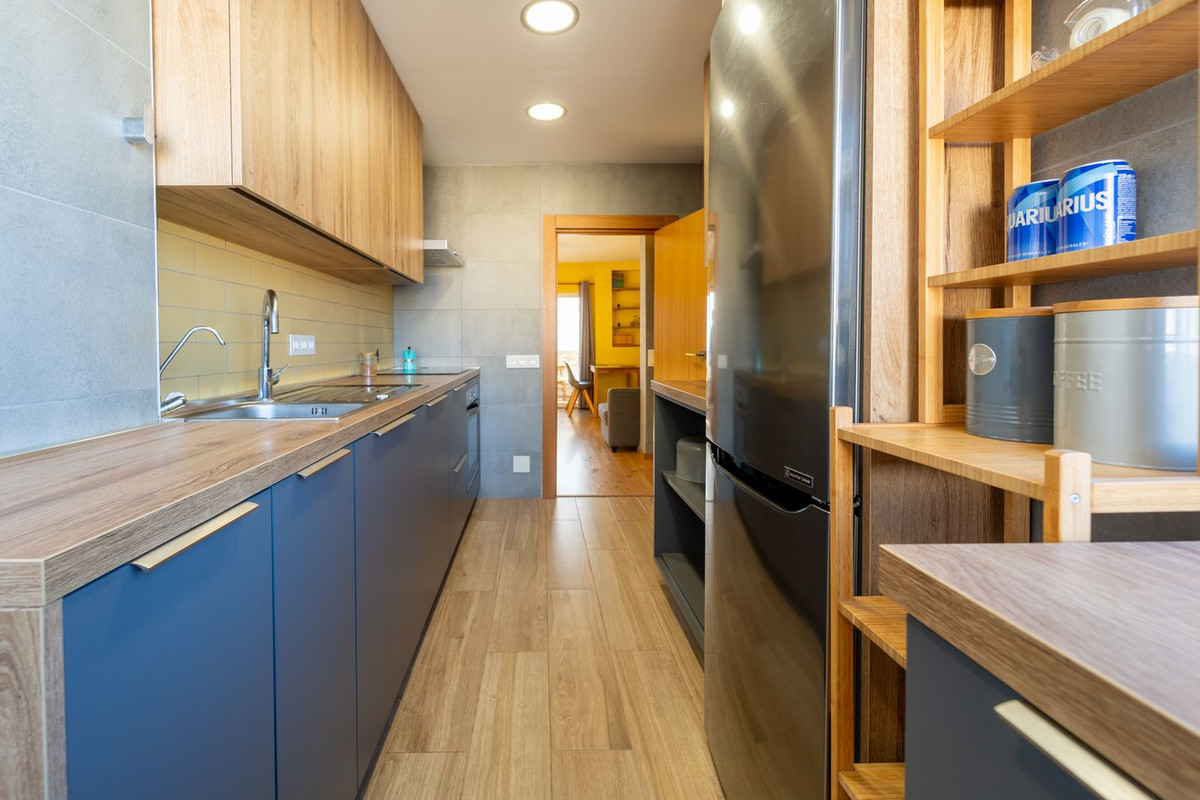Cet appartement comprend un séjour spacieux et agencé avec soin, idéal pour la vie de famille et les réceptions. La cuisine neuve et entièrement équipée offre de nombreux rangements et est complétée par une buanderie séparée pour plus de praticité.