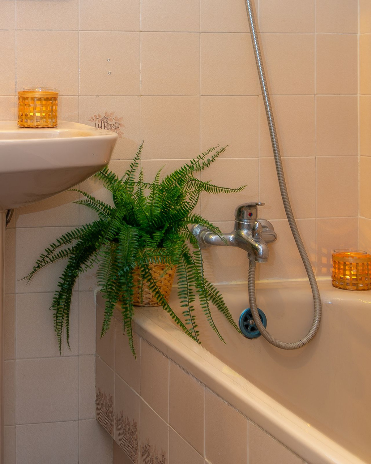 Bathroom with sink, WC, shower, bathtub and washing machine.