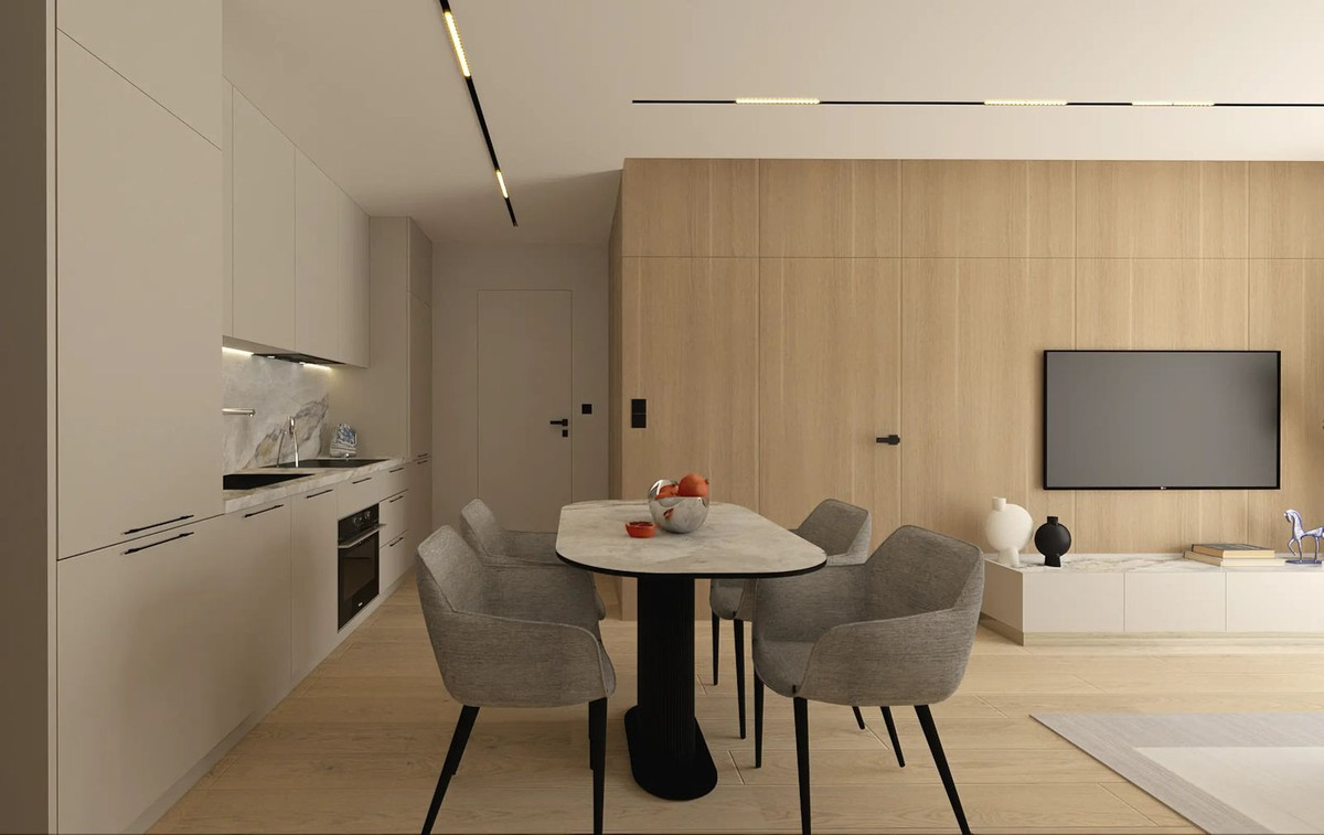 The apartment has undergone a complete renovation.