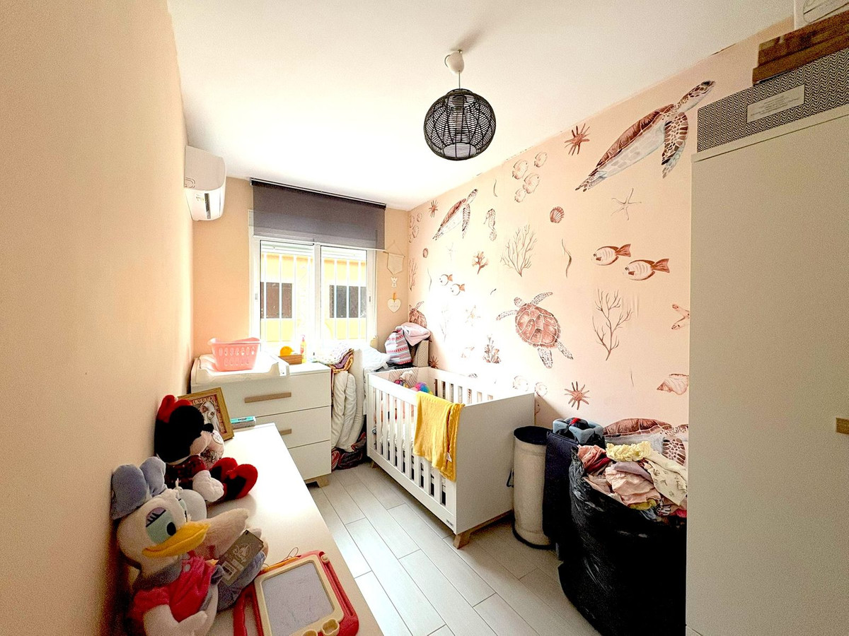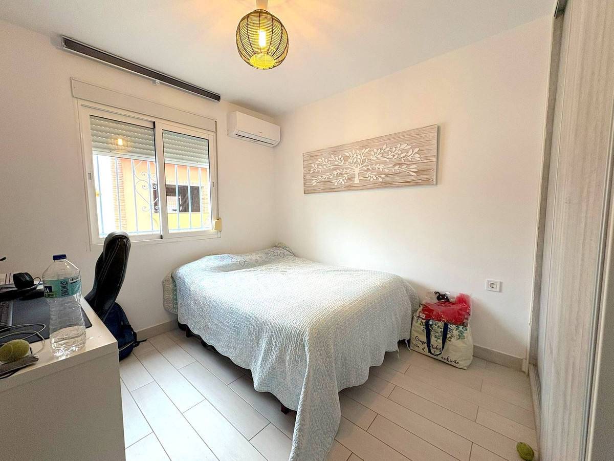 Recently renovated townhouse in Arroyo de la Miel, offering modern comfort and spacious living throughout. The property features three bedrooms, including a master with dressing area and another with fitted wardrobes. There are two fully equipped bathrooms, one with a hydromassage bathtub and the other with a walk-in shower. The stylish kitchen has been refurbished with a peninsula and Silestone worktops. A double-height storage room provides excellent additional space. Air conditioning with heat pump is installed throughout, plus a fireplace in the living room. Enjoy private front and rear patios, security shutters, reinforced door, and no community fees.